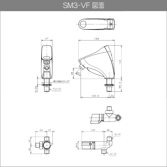 自動水栓 センサー水栓 混合栓用 サーモ継手付立水栓(床給水) SM3-VF ミナミサワ SuiSui MIX スイスイ
