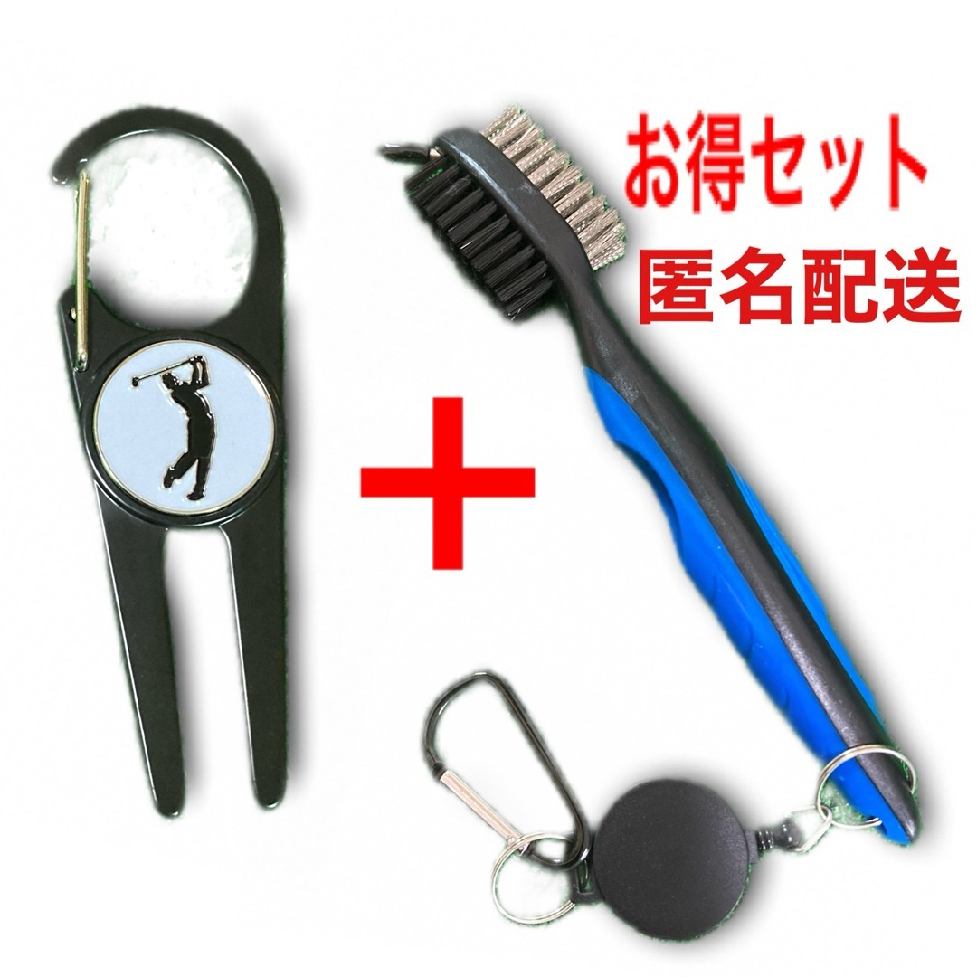 ゴルフ グリーンフォーク ボールマーカー ブラシセット ゴルフアクセサリー 用品