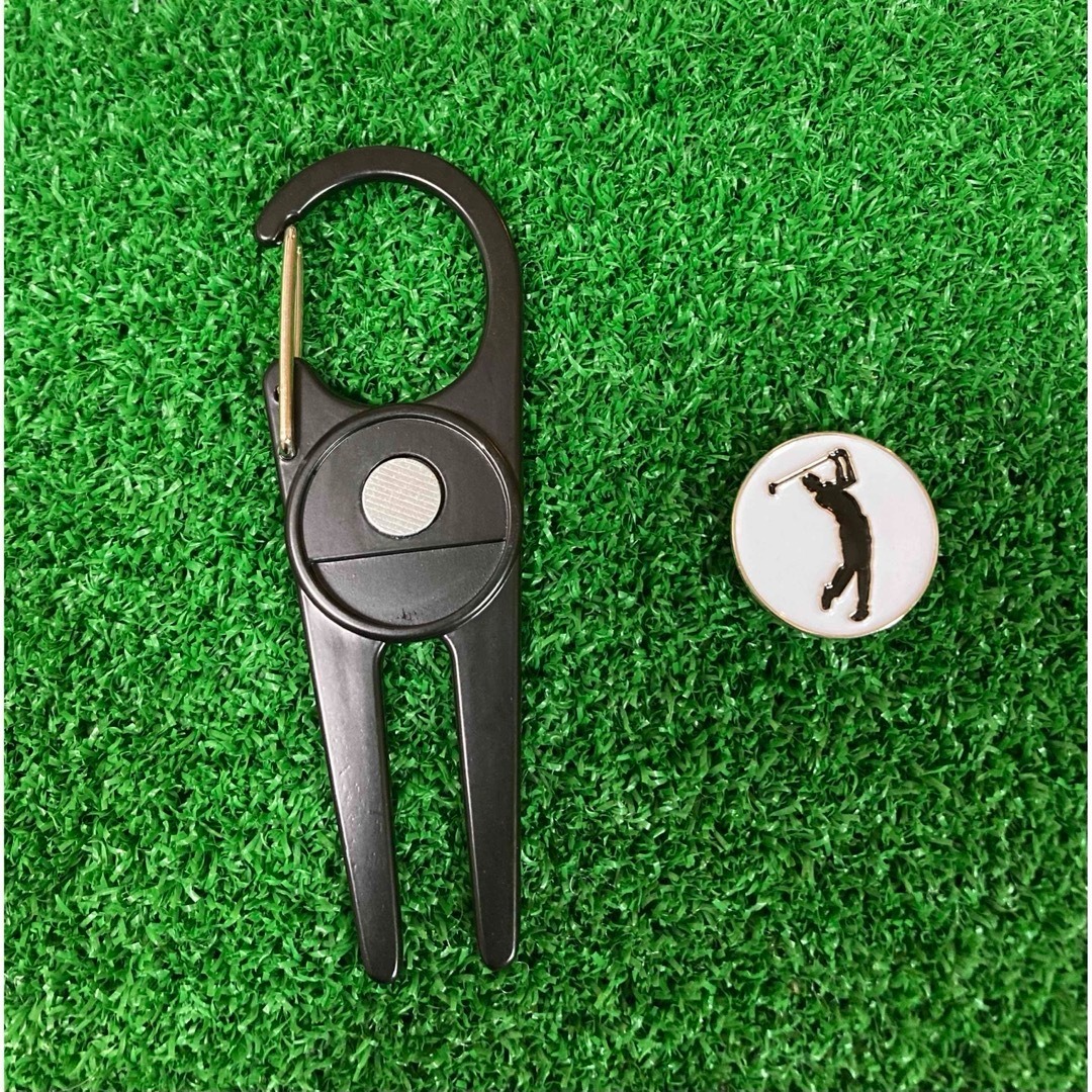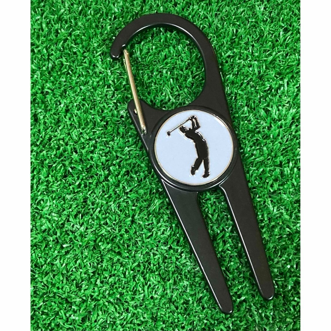 ※グリーンフォークとボールマーカーが一体となった商品です。更にカラビナ式ですのでポケットに入れる必要も無くゴルフパンツに引っ掛けるなど出来、大変便利になっております。