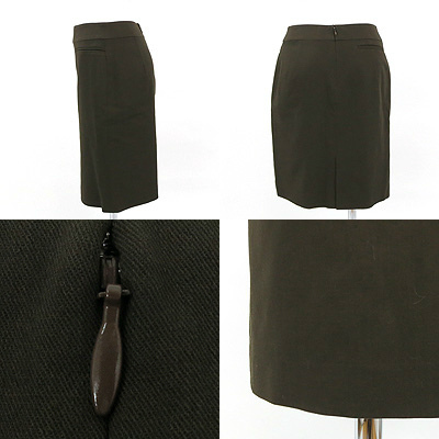 | 知的さを演出するハロッズのスカートが入荷しました! 薄手のウールで仕立てた軽快な着心地の一枚です。 お裾は広がりを抑えており、大人っぽいシルエットをお楽しみいただけます。 シックなお色目でコーデしやすく、オフィスシーンなど、 きちんと感 のあるスタイルも美しく決まります! バックフロントにスリットあり。 スカート丈約48cmウェスト約61cm 【サイズ】:(1) 【素 材】:(表地:毛95% ポリウレタン5% 裏地:キュプラ100%) 【 色 】:(カーキブラウン) 【程 度】:(A) 20091027-003 217 041 | ||||