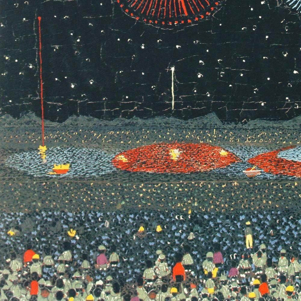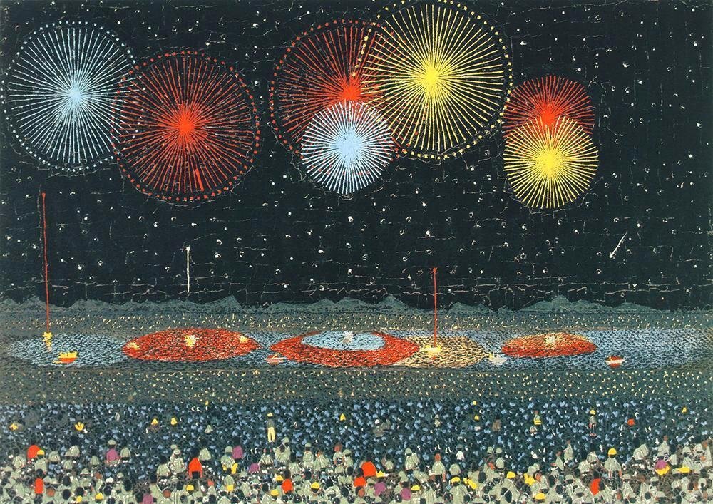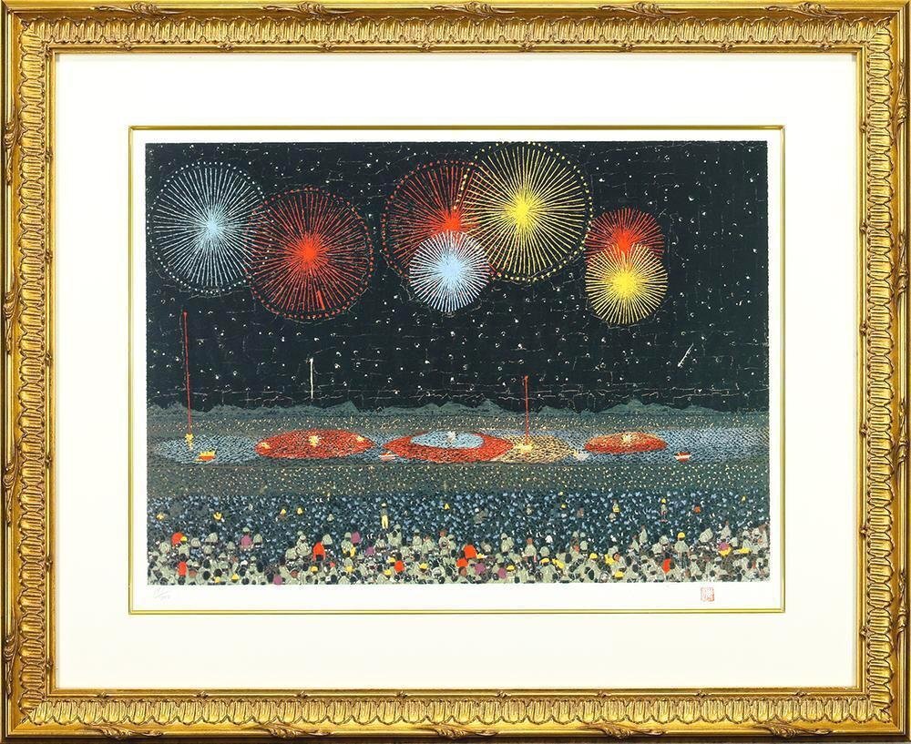 【真作】【WISH】山下清「長岡の花火」リトグラフ 約12号 大作 ◆花火人気作   〇放浪の天才画家 裸の大将 超絶技巧の貼絵 #25112231