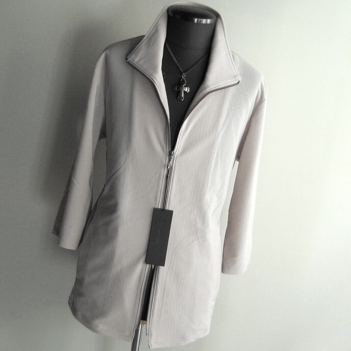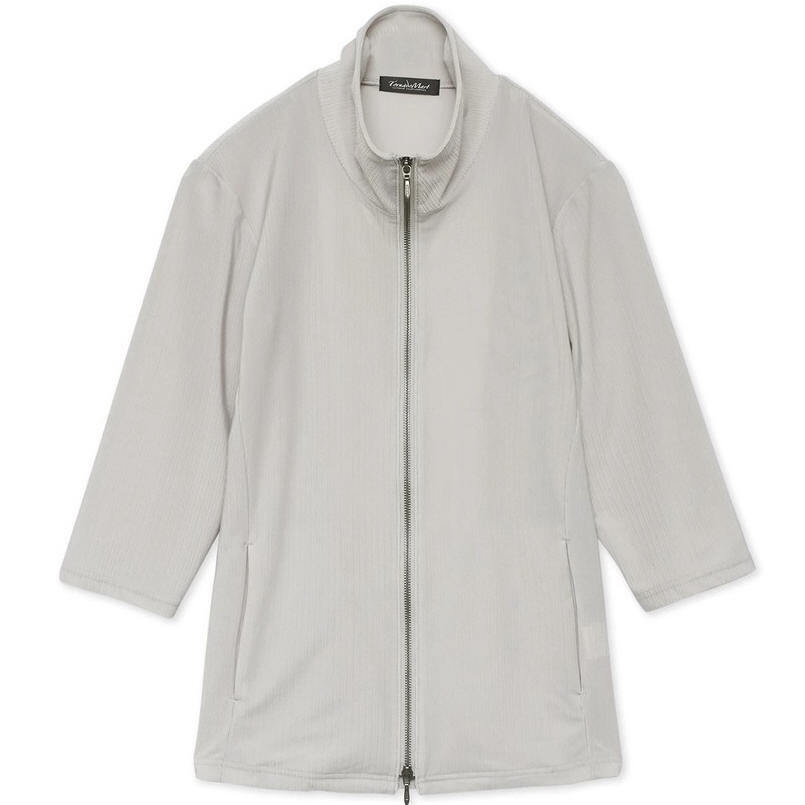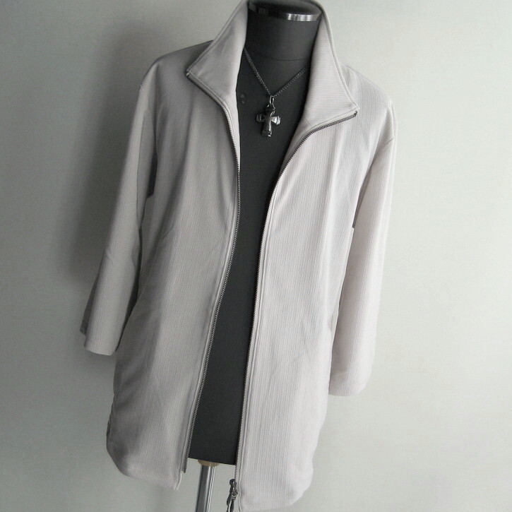 1.8万 新品 LL トルネードマート プランプトリコット7分袖スタンドZIPカーデ グレー サンプル 送料無料 685