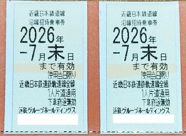 最新!  近鉄株主優待 乗車券 2枚セット ☆ 近畿日本鉄道・近鉄株主優待乗車券☆ 2026年7月末まで
