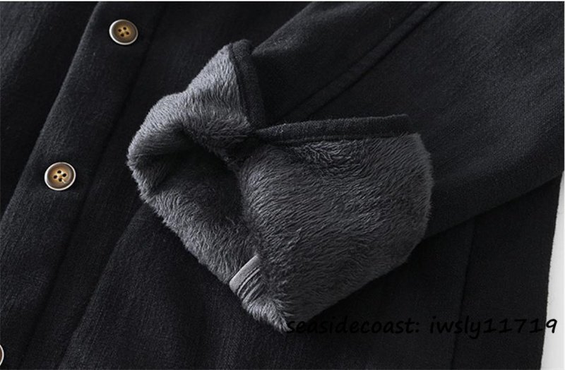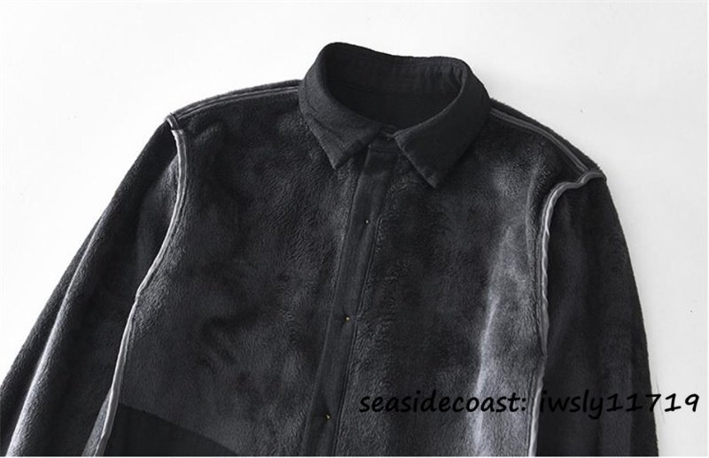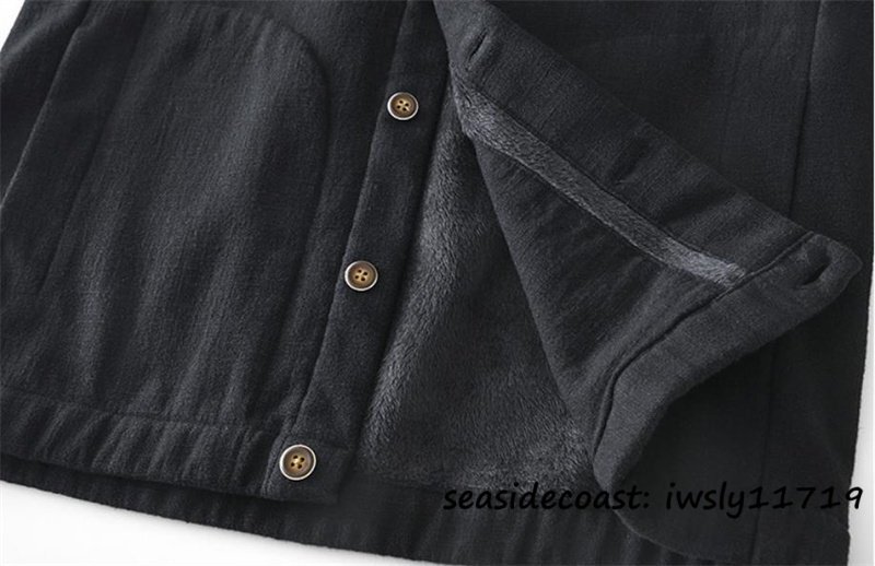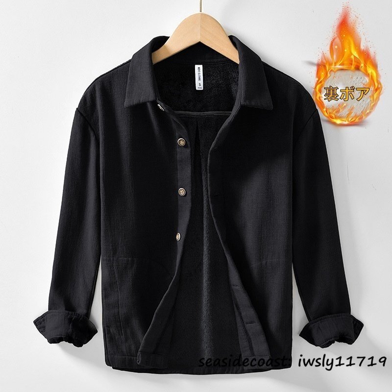 人気新品■長袖シャツ メンズ 裏起毛 厚手 防寒 保温 シャツジャケット アウター 秋冬 無地 アメリカン カジュアル ゆったり ブラック 2XL