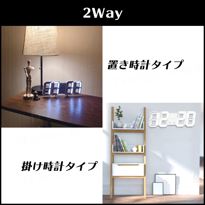 3D 置き時計 デジタル LED 壁掛け 立体 ウォール クロック アラーム USB 韓国 おしゃれ 白 ホワイト 目覚まし インスタグラム 日本語説明書 | |||