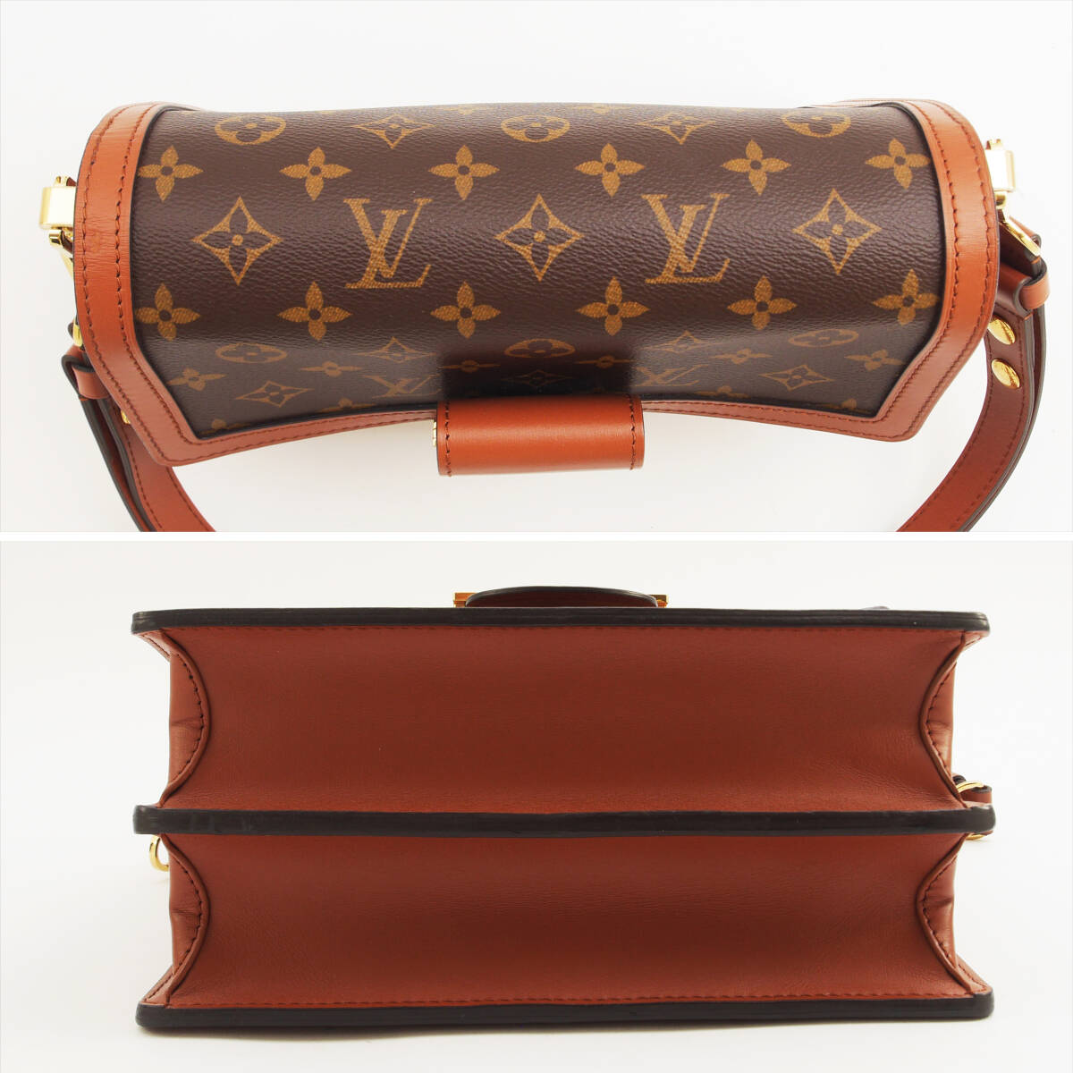 | 外側 | A | ●モノグラム柄くっきり ●スレ箇所若干あるものの、糸飛び・割れ無し ●金具ピカピカ(保護シール付きの箇所ございます) ●型崩れの少ない美しい状態です |