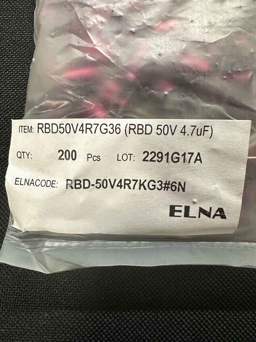 200個 ELNA エルナー 音響用(RBD)小形アルミニウム電解コンデンサ 50V4.7μF