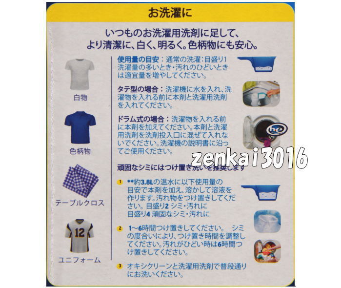 通常の洗濯はもちろん、スニーカーの汚れ落とし、衣類、じゅうたん等についたケチャップ・ソース・醤油などの頑固な油汚れ・シミを簡単に落とし、ニオイもスッキリ! キッチン、洗面、お風呂などの水周りのお掃除にもお使いいただけます。