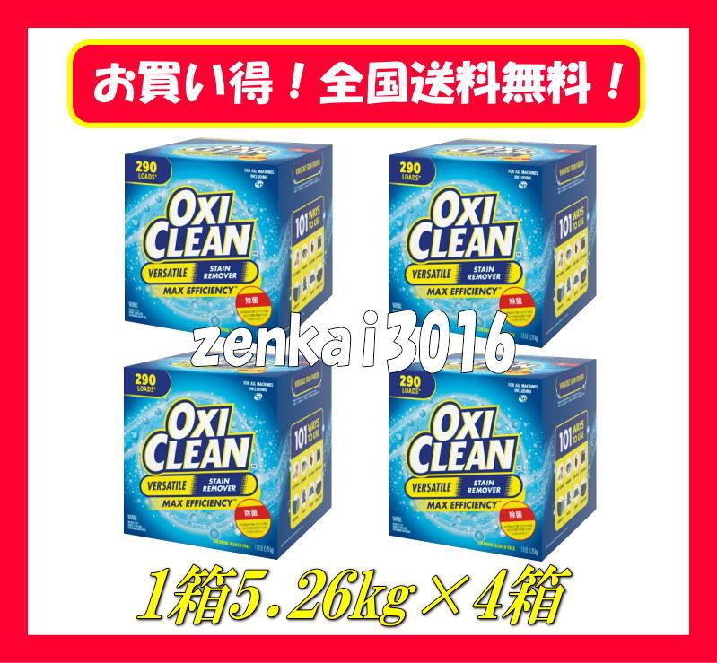 \新品未使用/☆オキシクリーン大容量5.26kg×4箱!洗濯洗剤!年末大掃除!頑固な汚れもこれで解決!コストコ!シューズ洗い!汚れ落とし