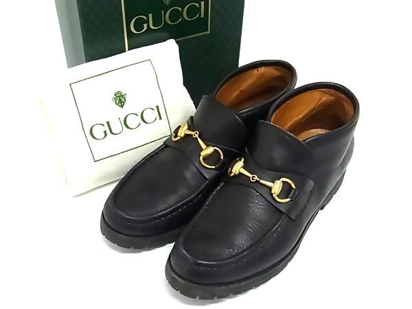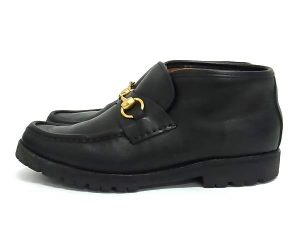 1円 GUCCI グッチ 104 0088 ホースビット レザー チャッカブーツ 靴 シューズ 表記サイズ37 1/2 (約24.5cm) レディース ブラック系 BP6578