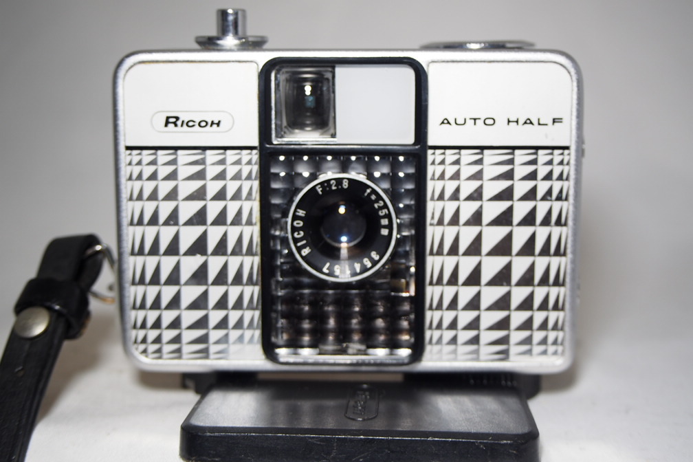 【分解整備済】リコーオートハーフE幾何学鏡面 モルト張替済 レンズキャップ・ストラップ付
