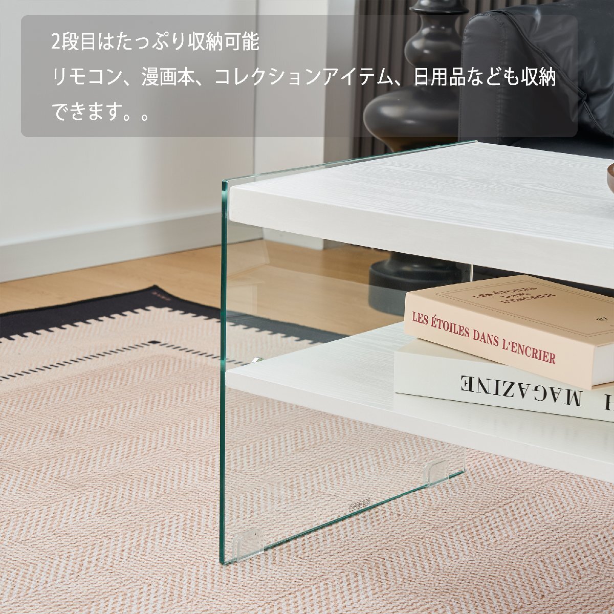 • 【実用的な収納スペース】2段構造で、雑誌や書籍、装飾品を収納できる便利なスペースを提供しながら、開放感を保ちます。