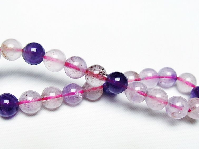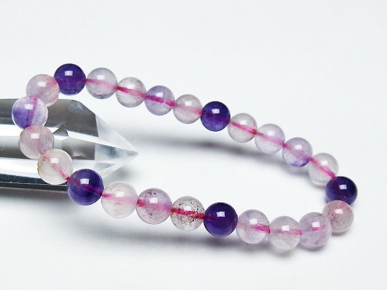| ■商品名: セイクリッドセブンブレスレット ■商品ID: T141-8239 ■商品重量:約 15.7g ■商品サイズ:内周約:155mm(±5mm)粒直径約:8mm(±0.5mm) 【セイクリッドセブン】 セイクリッドセブンは水晶・アメジスト・カコクセナイト・ゲーサイト・スモーキークォーツ・ルチル・レビドクロサイトの7つの鉱物を内包した天然石です。 また、セイクリッドセブンと同じ成分のものでブラジルのエスピリトサント鉱山から産出されたものはスーパーセブンと呼ばれ、セイクリッドセブンとは区別されます。 セイクリッドセブンは複数の鉱石のエネルギーが調和しており持つ人を選ばないといわれています。 7つの鉱物のパワーを受け継いでいるので総合的に運気を高めたい、全ての石の効果を同時に得たいという方には打って付けの石といえるでしょう。 また、内なるパワーを引き出し潜在能力を開花させる効果も期待できますので、自分自身の可能性を広げたいと考えている方にもおすすめです。 加工されたもので7つの鉱石を全て内包したものは非常に稀ですが、原石の状態で7つの鉱物が入っていれば加工後の状態であってもすべての鉱物のパワーが秘められているといわれています。 ⇒ セイクリッドセブンをもっと詳しく ◆ワンポイント情報 セイクリッドセブンは強い自浄作用を持つとされています。頻繁に浄化する必要はありませんが、石が疲れているように感じた時はクラスターや流水などで浄化してあげるようにしましょう。 内包しているスモーキークォーツやアメジストは紫外線によって退色する恐れがあるため、日光浴での浄化はおすすめしません。 |