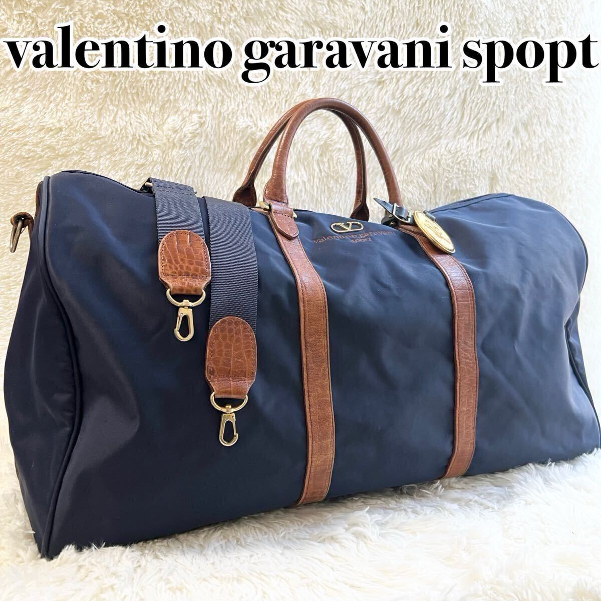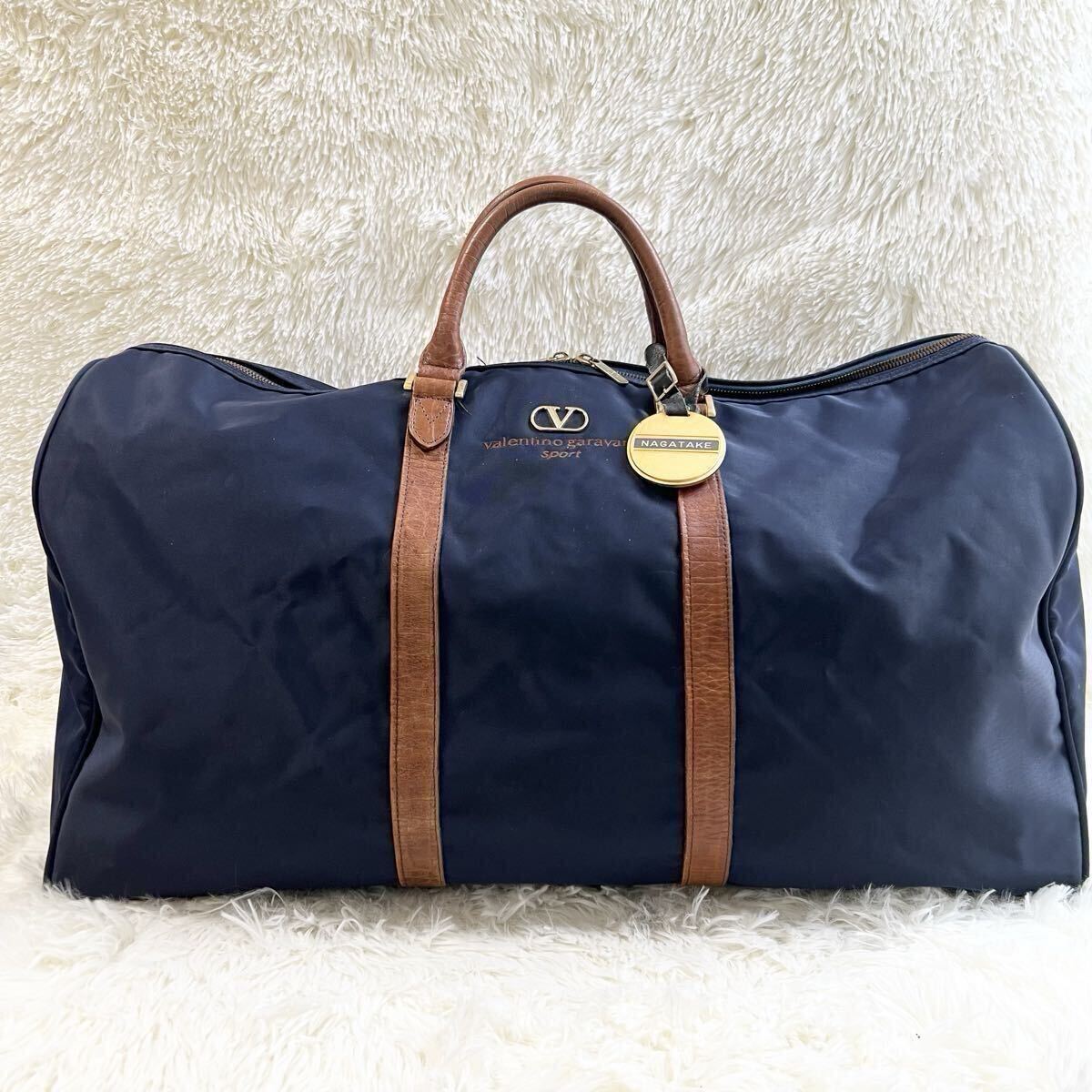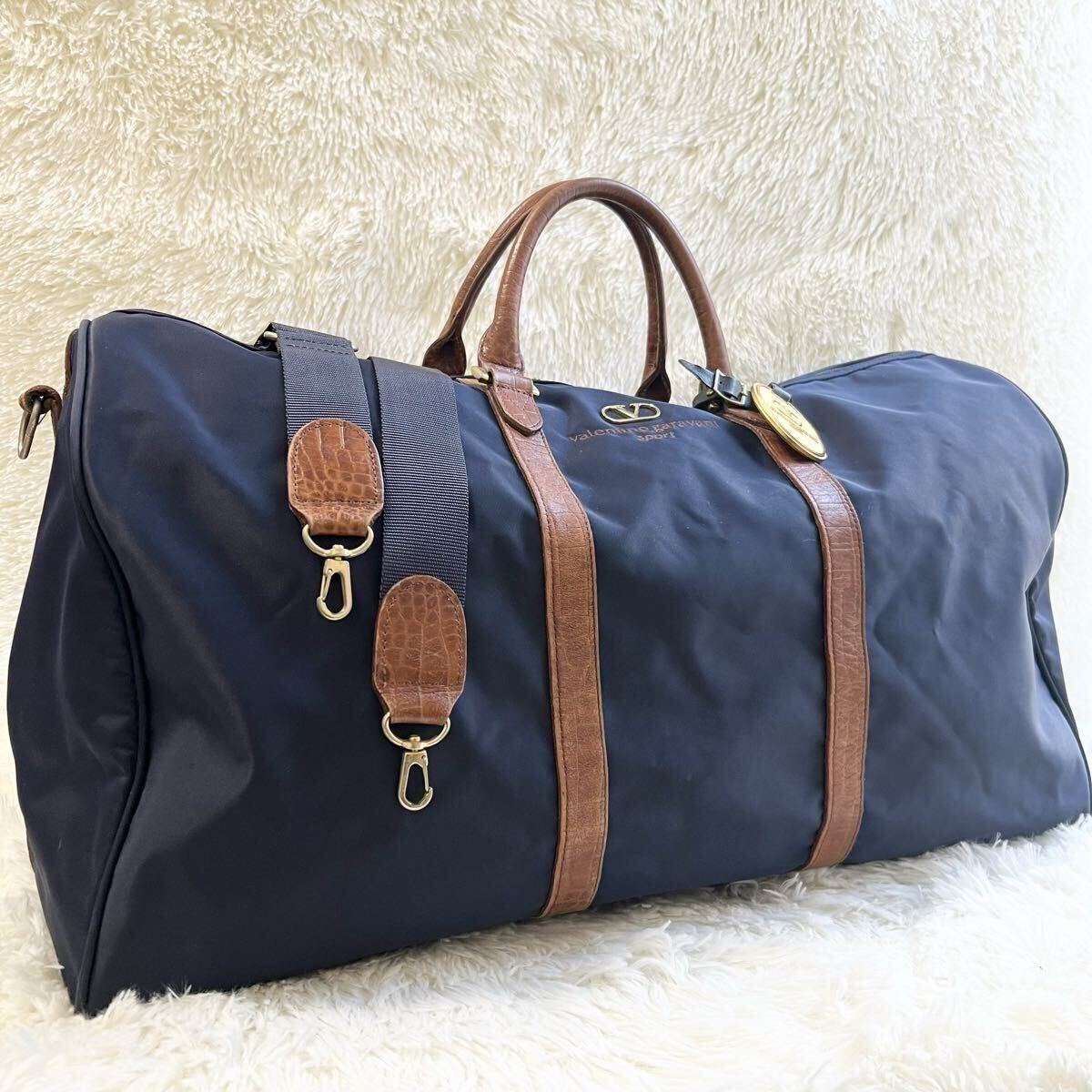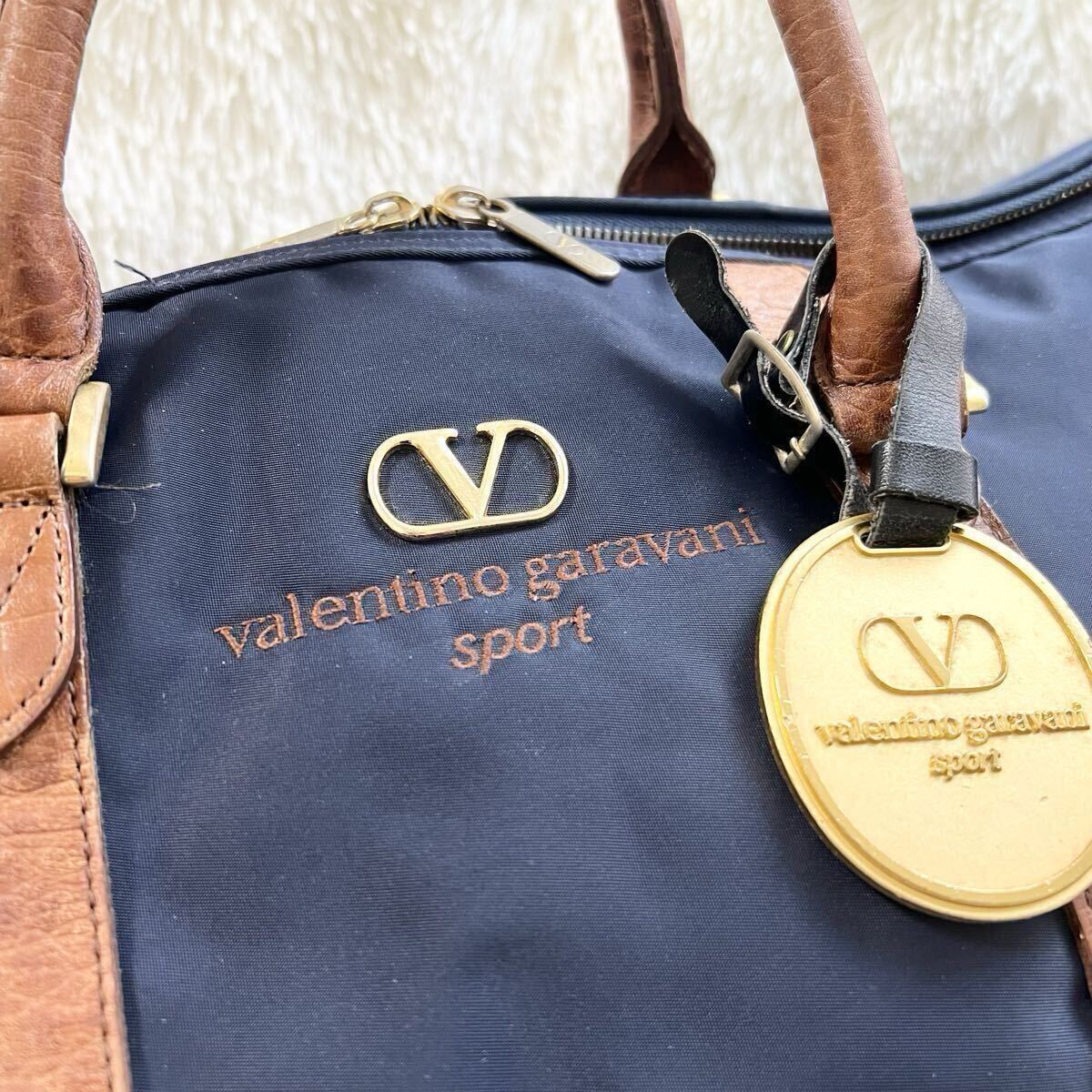 【1円〜】大容量 美品 Valentino garavani ヴァレンティノ ガラヴァーニ ボストンバッグ レザー ナイロン 2way ブラウン ネイビー 茶 紺
