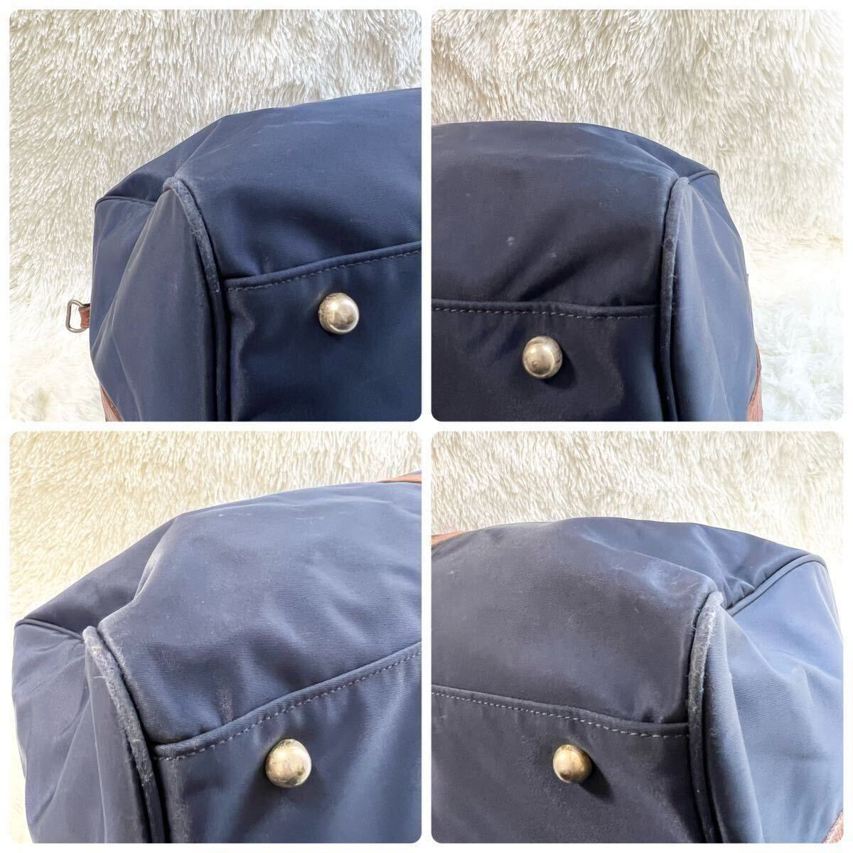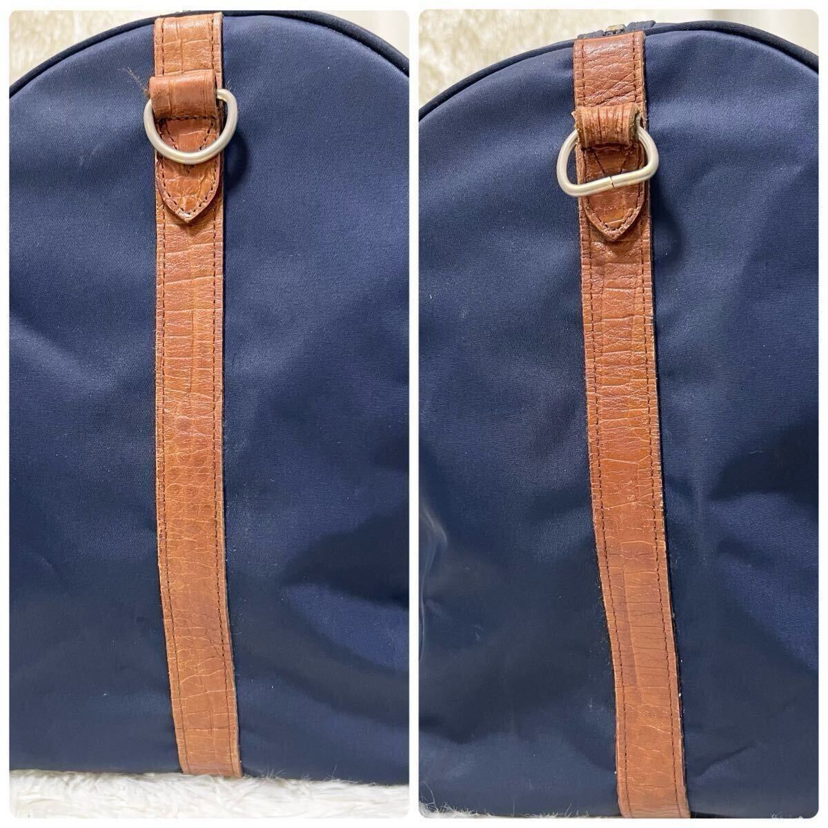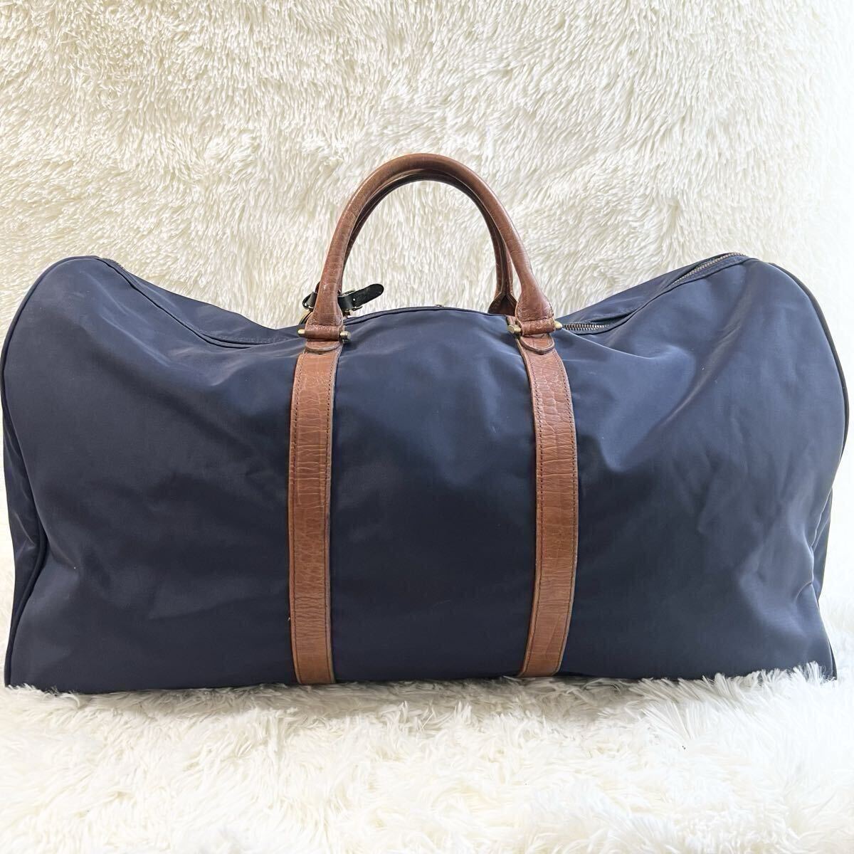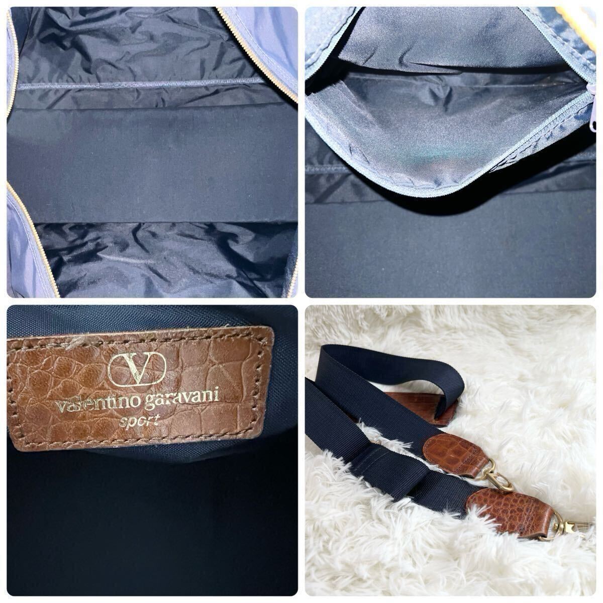 【1円〜】大容量 美品 Valentino garavani ヴァレンティノ ガラヴァーニ ボストンバッグ レザー ナイロン 2way ブラウン ネイビー 茶 紺