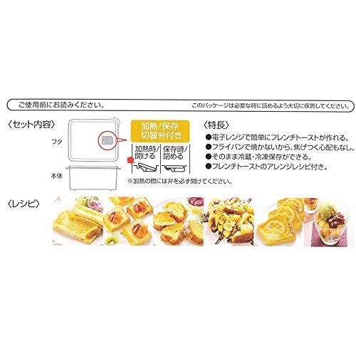 説明 しっとりおいしいフレンチトーストが電子レンジで簡単に作れる専用容器 本体にパンを入れ卵液をかけて、フタをして電子レンジ500Wで4分加熱するだけ フライパンで焼かないから、焦げつく心配もなし フタをして、そのまま冷蔵・冷凍保存もOK