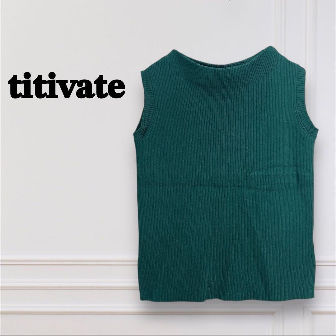 【titivate ティティベイト】リブニット ベスト グリーン ノースリーブ 7099B8