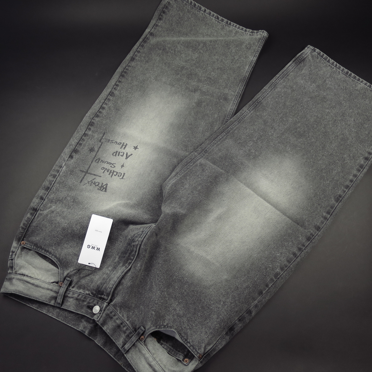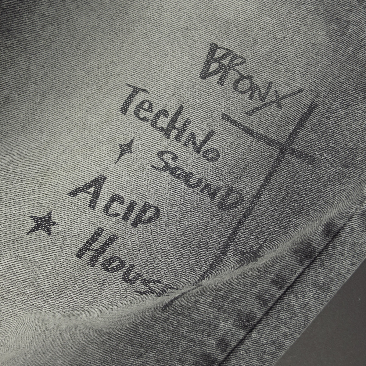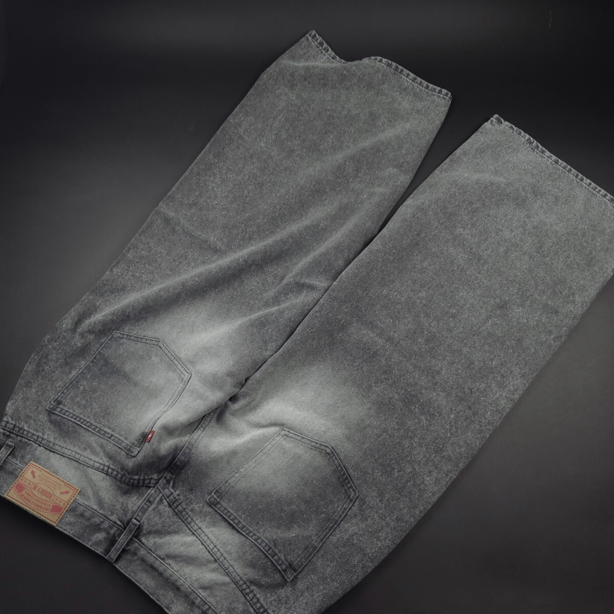 ■加工&ペイントデザインのヴィンテージライクワイドデニム。 ■コットンデニムとコットンのダック生地に加工使用した5ポケットのワイドボトム。 ■コオリジナルのパッチ、リベット、ボタンを施しています。 ■コシルエットはワイドシルエット。 ■コフロントにはBRONXのグラフィックをプリント。 ■コットンデニムをベースにブラスト加工を施しヴィンテージのような風合いに仕上げています。 |