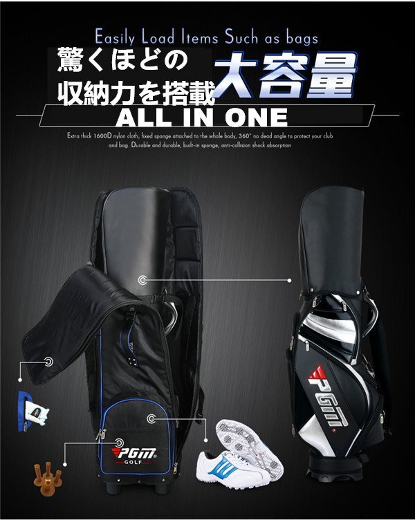 トラベルバッグ ゴルフ キャディバッグ カバー ローラー付き キャスター付き ゴルフバッグ トラベルカバー ケース 持ち運び用 ク