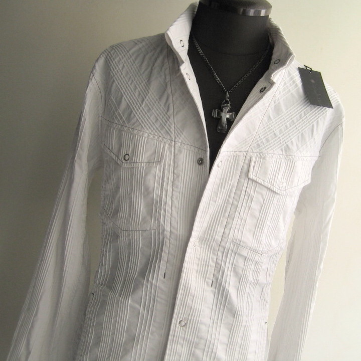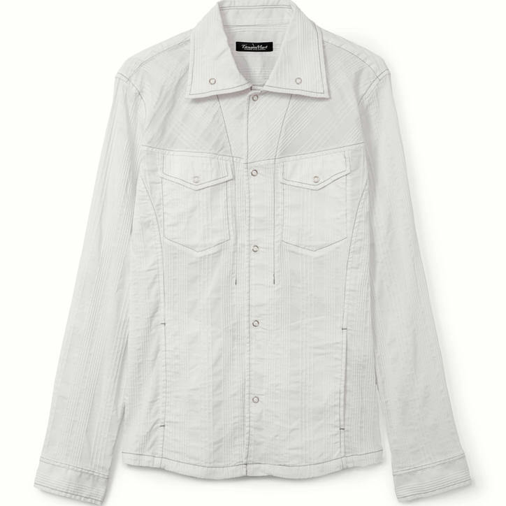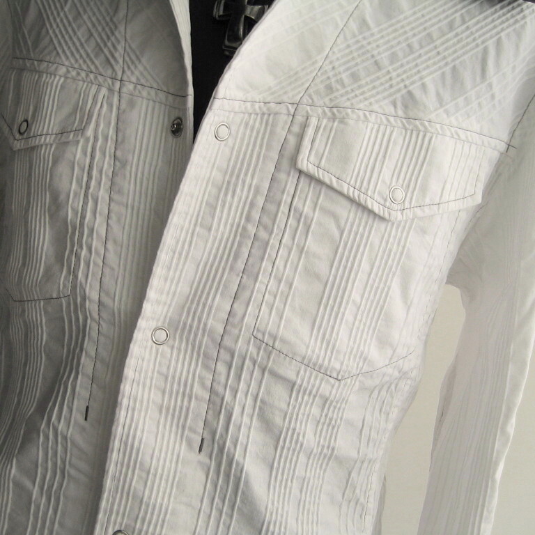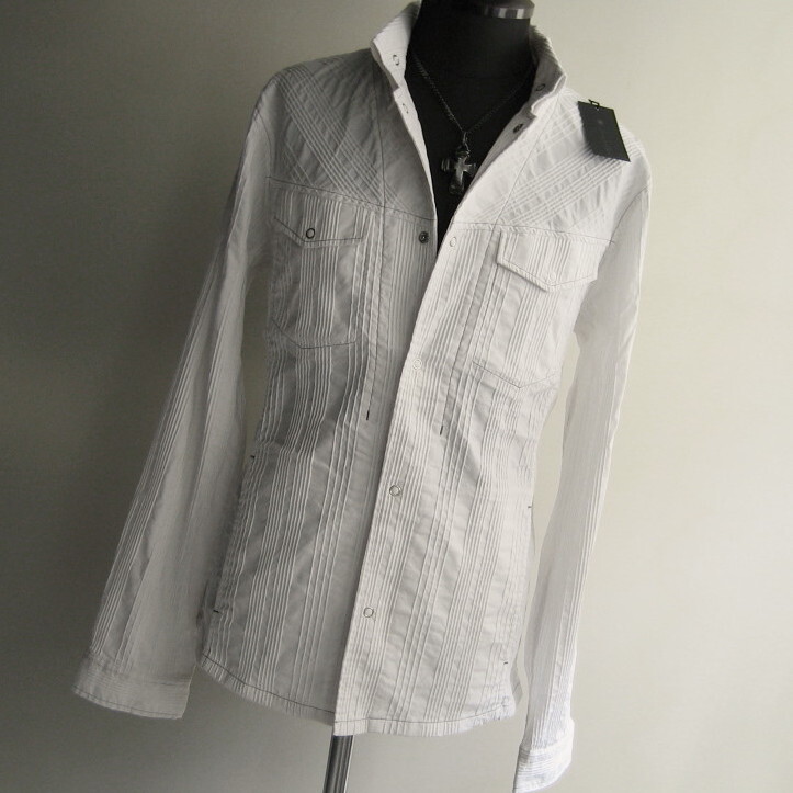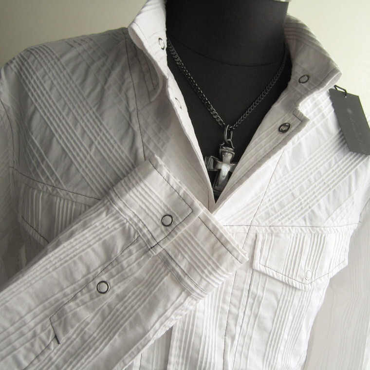 2.6万 新品 L トルネードマート タックストライプシャツブルゾン長袖 ホワイト 送料無料 サンプル 394