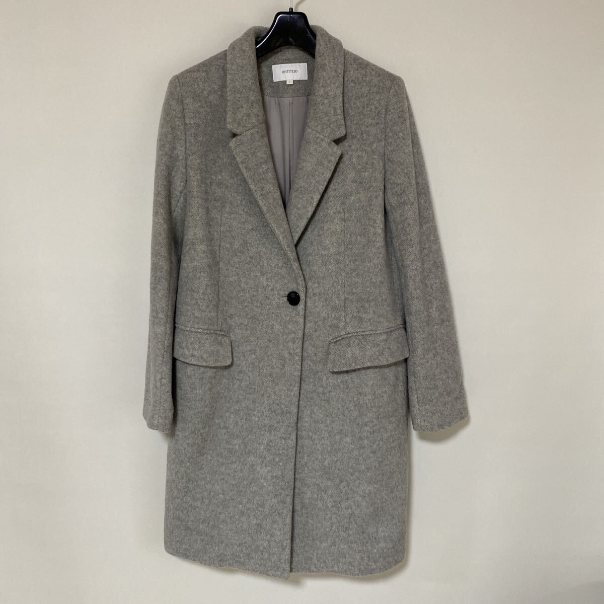 UNTITLED (アンタイトル)のお品です。良質のウール99%ロングコートです。落ち着いた中にも洗練されたデザインで、都会的な印象を与えます。軽く、柔らかい素材で暖かいです。フロントはボタンが1つ付いています。お色は画像でご確認ください。グレー系です。明るいトーンで、穏やかな雰囲気を演出します。すっきりとした飾らないデザインで、高級感があります。両サイドにポケットがあります。スリットなし。良質の生地が使われています。