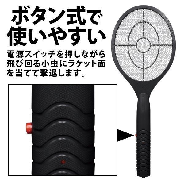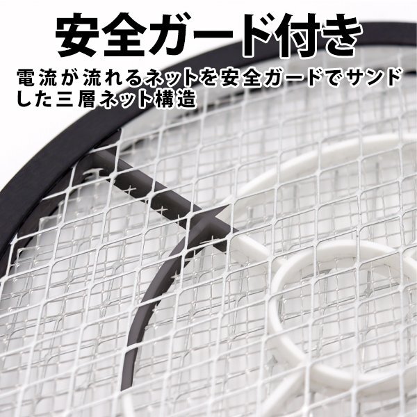 | ※本製品はおもちゃではありません。 ※電池は付属してません。別途ご用意ください。 ※周囲の人やペットが居ないか確認の上、ご使用ください。 ※ご使用中や使用直後は絶対にラケット面に触れないでください。 ※必要以上に振り回さないでください。 | |