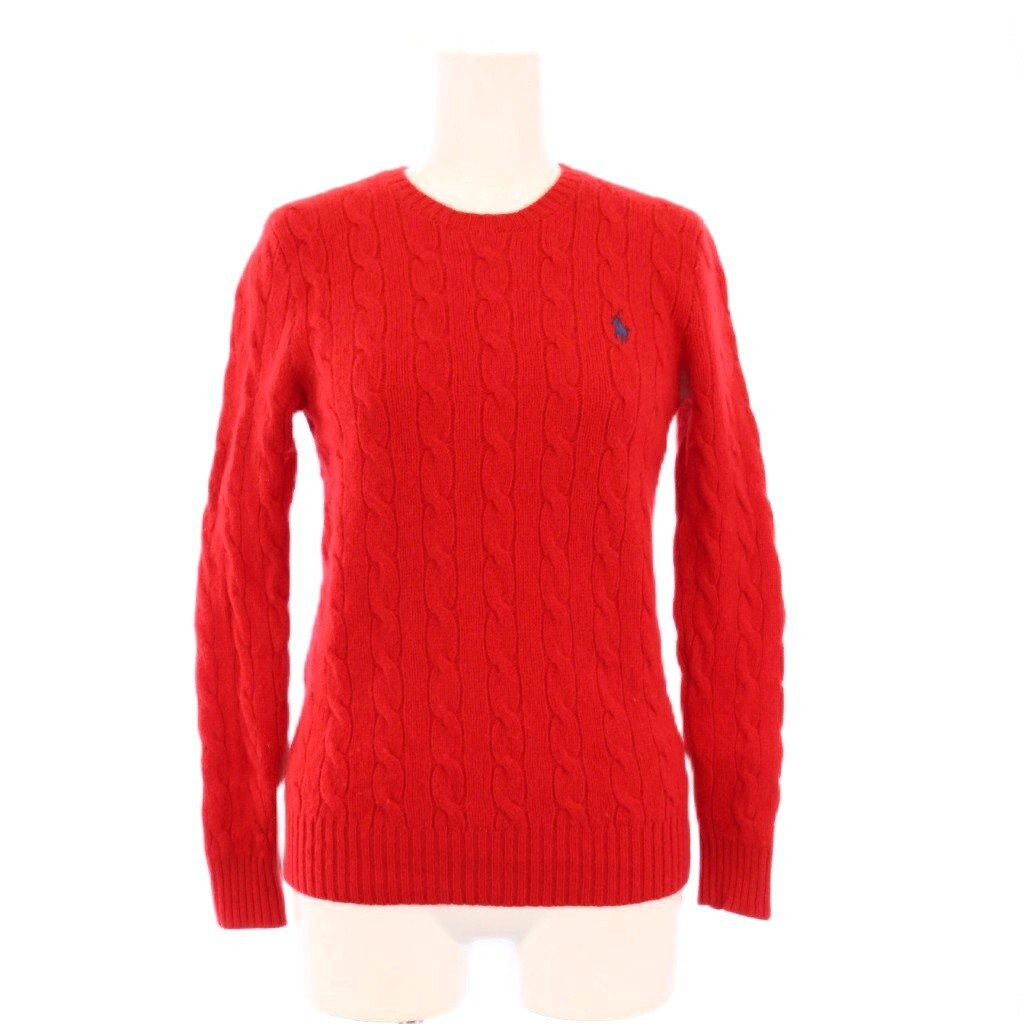 ポロ ラルフローレン POLO RALPH LAUREN ニット セーター 長袖 ケーブル編み スモールポニー カシミヤ混 S 赤 /KH レディース