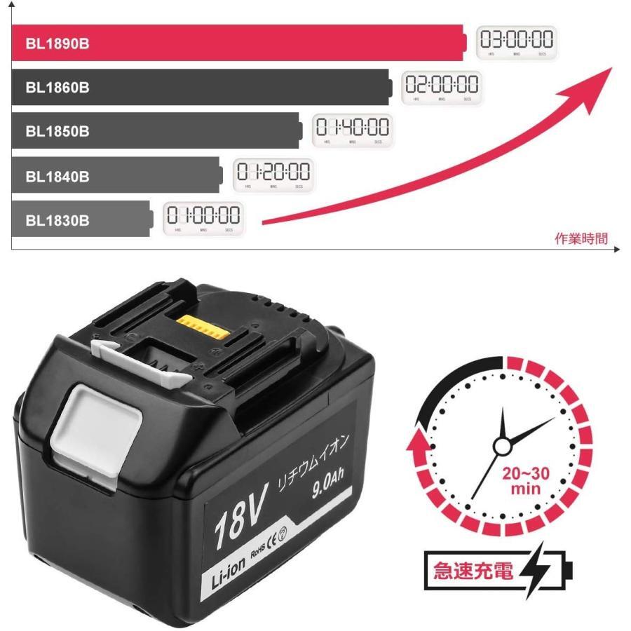(A) マキタ makita バッテリー 互換 BL1890B 2個 大容量 18v 9.0Ah BL1820 BL1830B BL1840B BL1850 BL1850B BL1860 BL1860B BL1890 対応