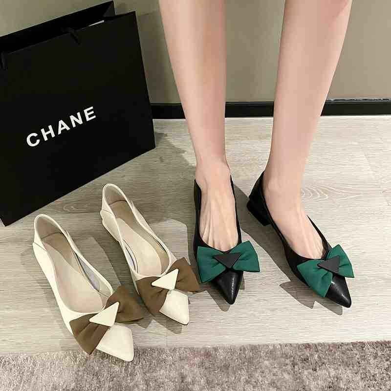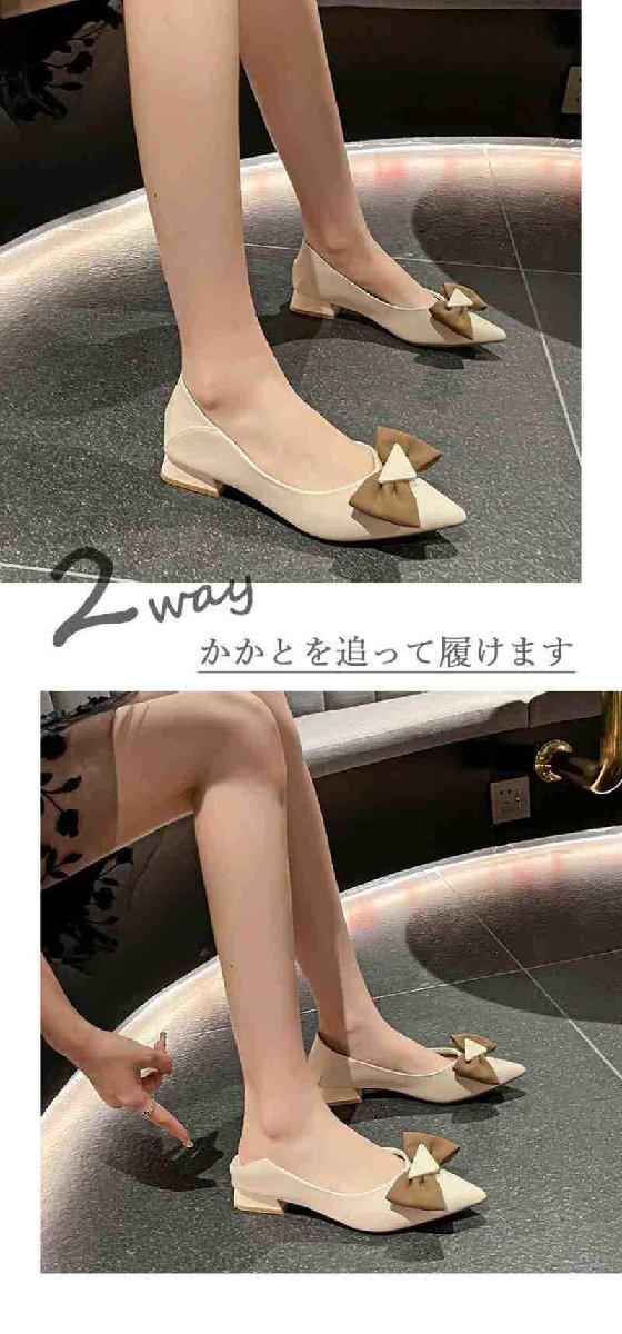 ・ポインテッドトゥデザインとアッパーに装飾があり脚がスッキリ見え。