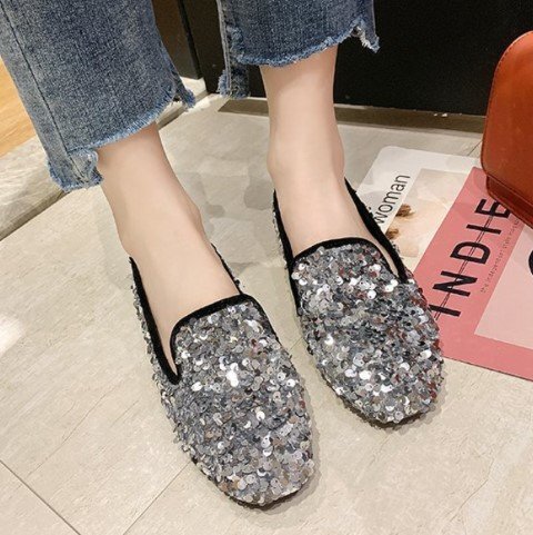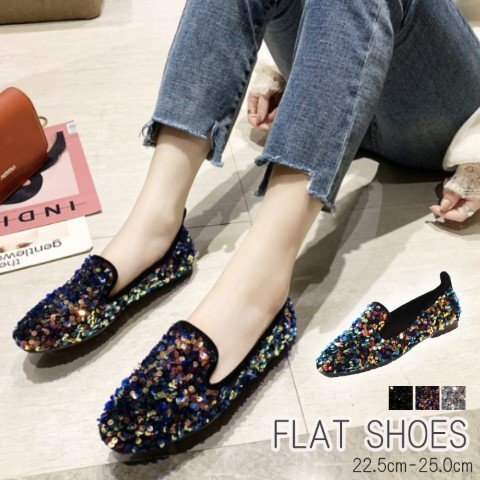 ・足元が華やかになるスパンコールシューズ。