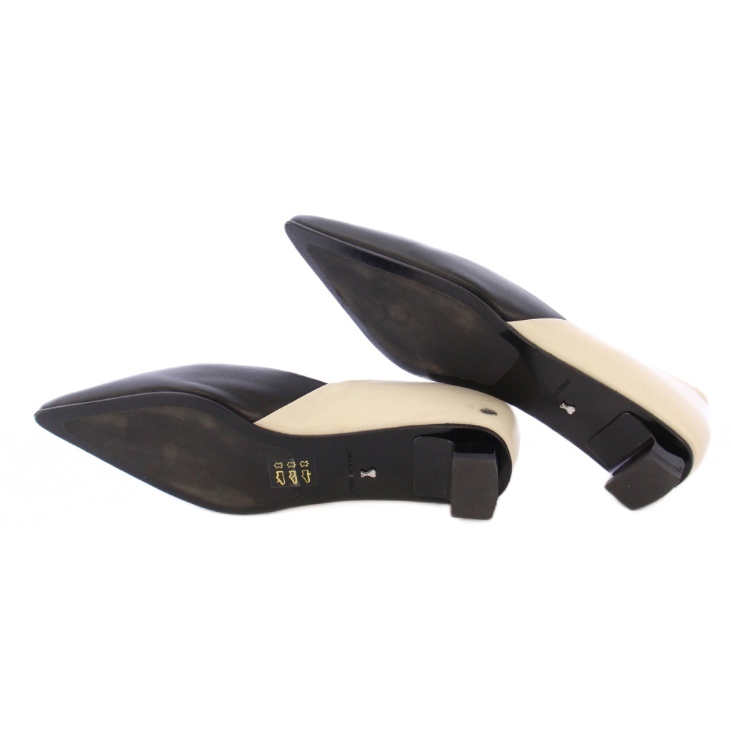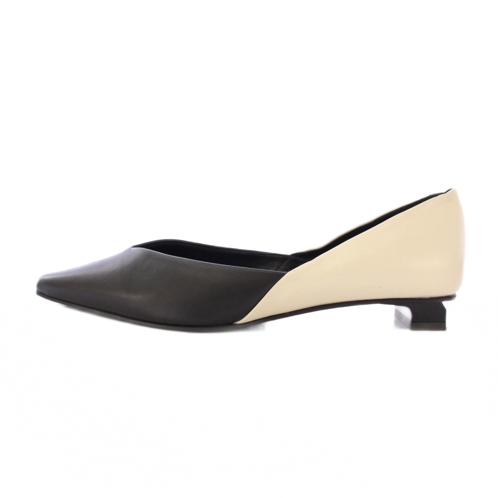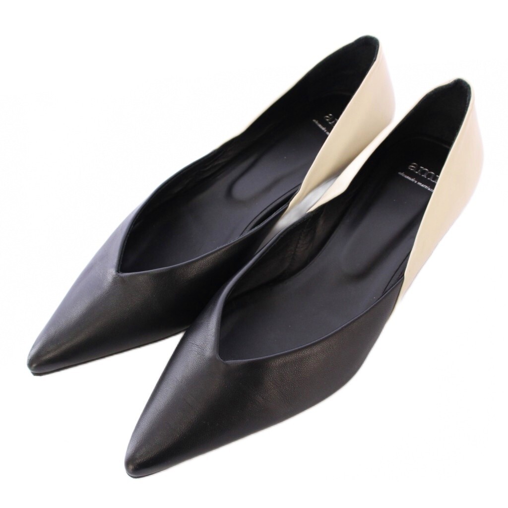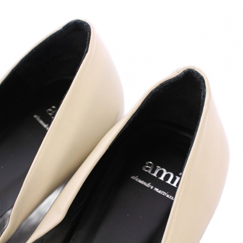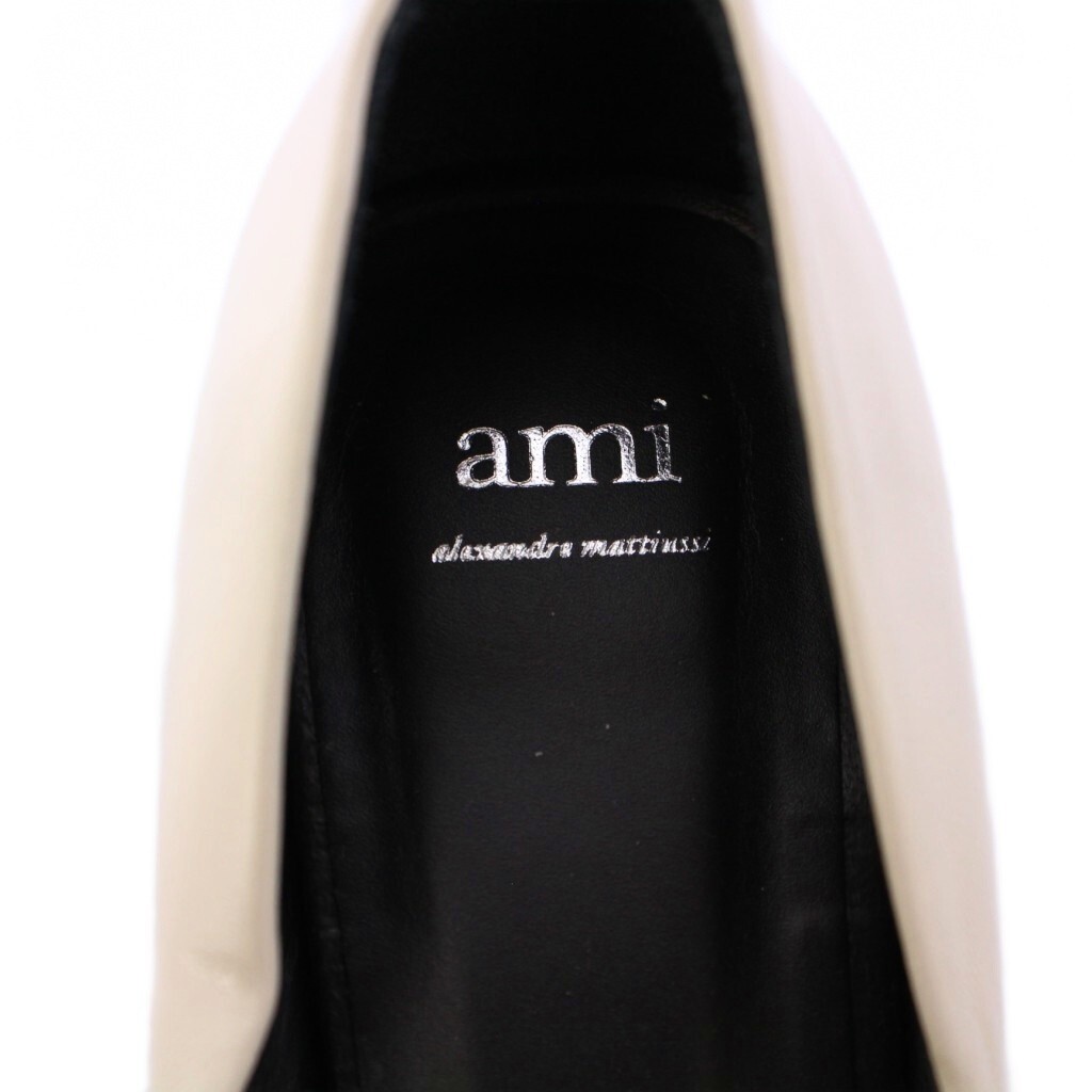 アミ アレクサンドル マテュッシ ami alexandre mattiussi パンプス ポインテッドトゥ ローヒール Vカット レザー 37 アイボリー 黒
