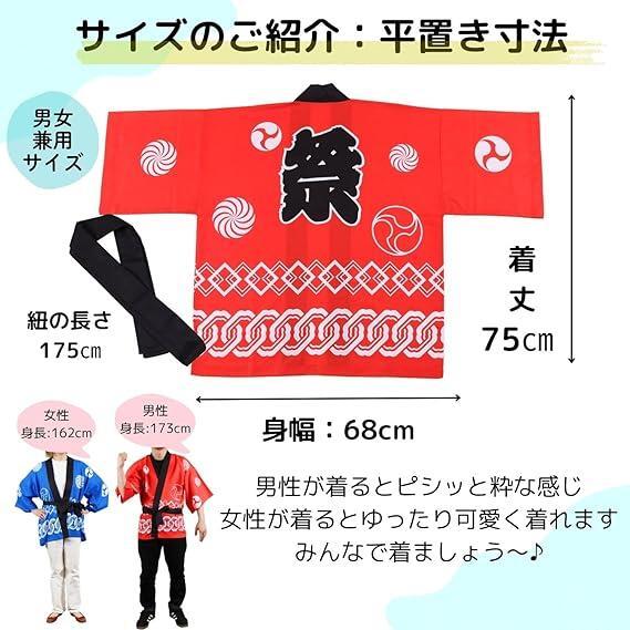 • 【セット内容】法被と帯のセット。着るだけで楽しい雰囲気になり、お揃いで着るとさらに盛り上がります!
