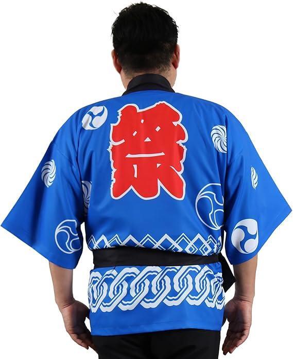 はっぴ 法被(ブルー) 祭 腰ひも付き 男女兼用 つなぎ柄 赤 青 イベント 行