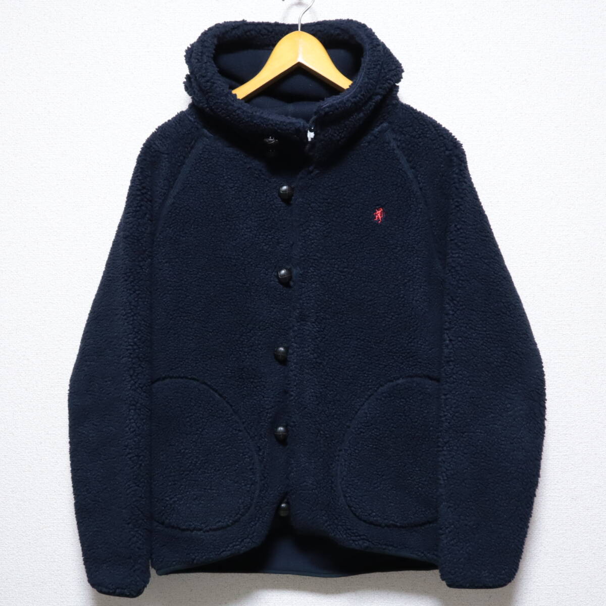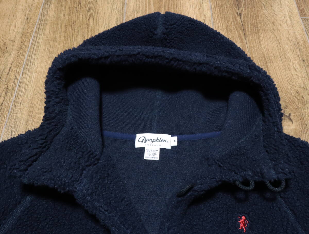 ■Gymphlex ジムフレックス■ボアフリース フーデッド ジャケット■メンズ M ネイビー 紺 J-1185 PL くるみボタン■フード パーカー
