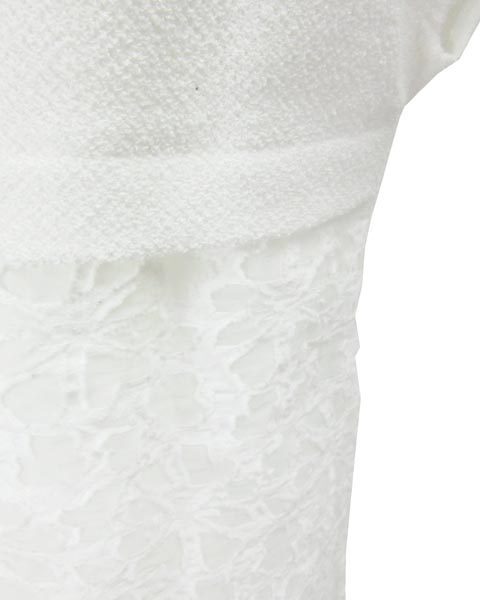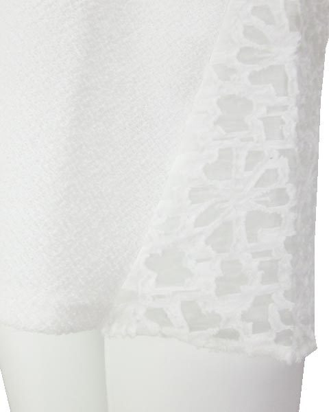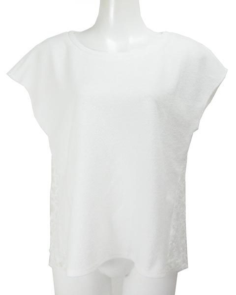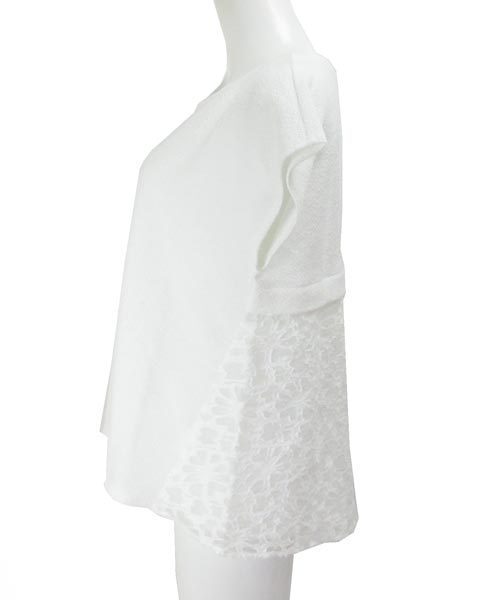| 2種類の素材使いの上品カジュアルなトップス。小さなラメが入っていたり、バックスタイルにレースが使われていたり華やかです。コーディネートしやすいデザインで、重宝します。 |
