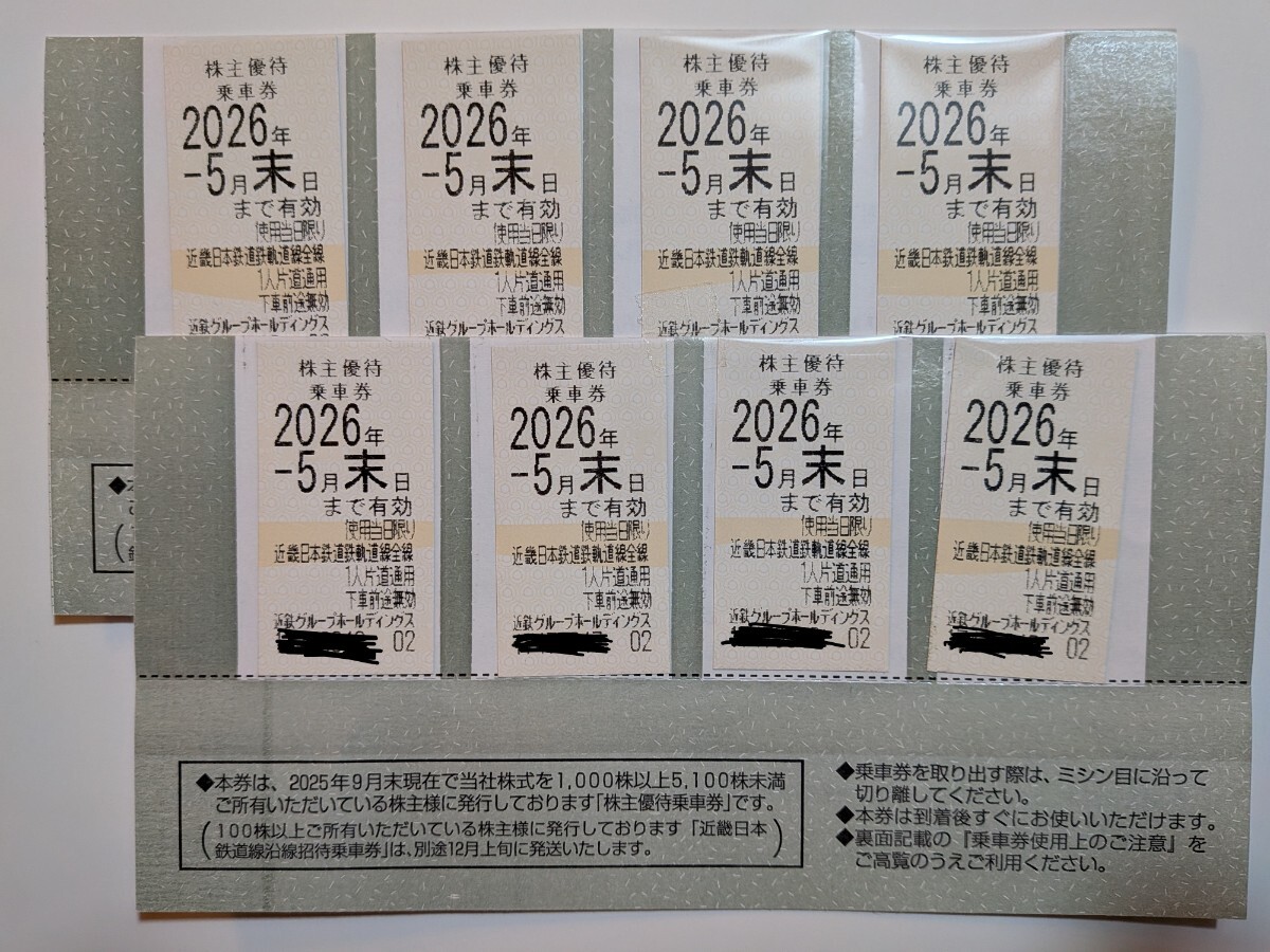 近鉄株主優待乗車券(4枚綴り)×(2セット)計8枚の出品です。