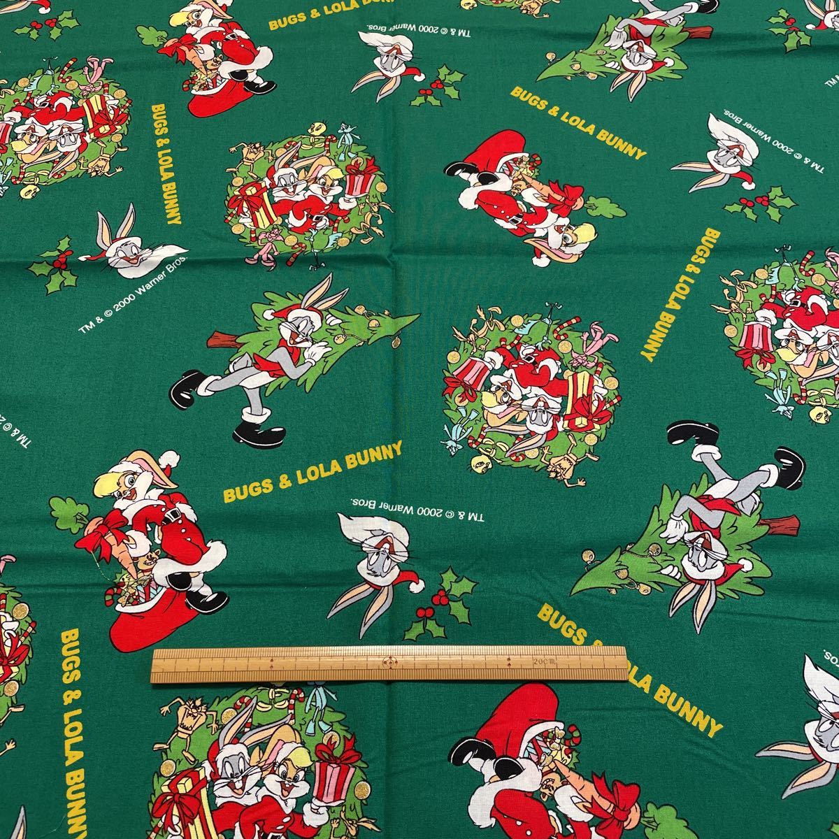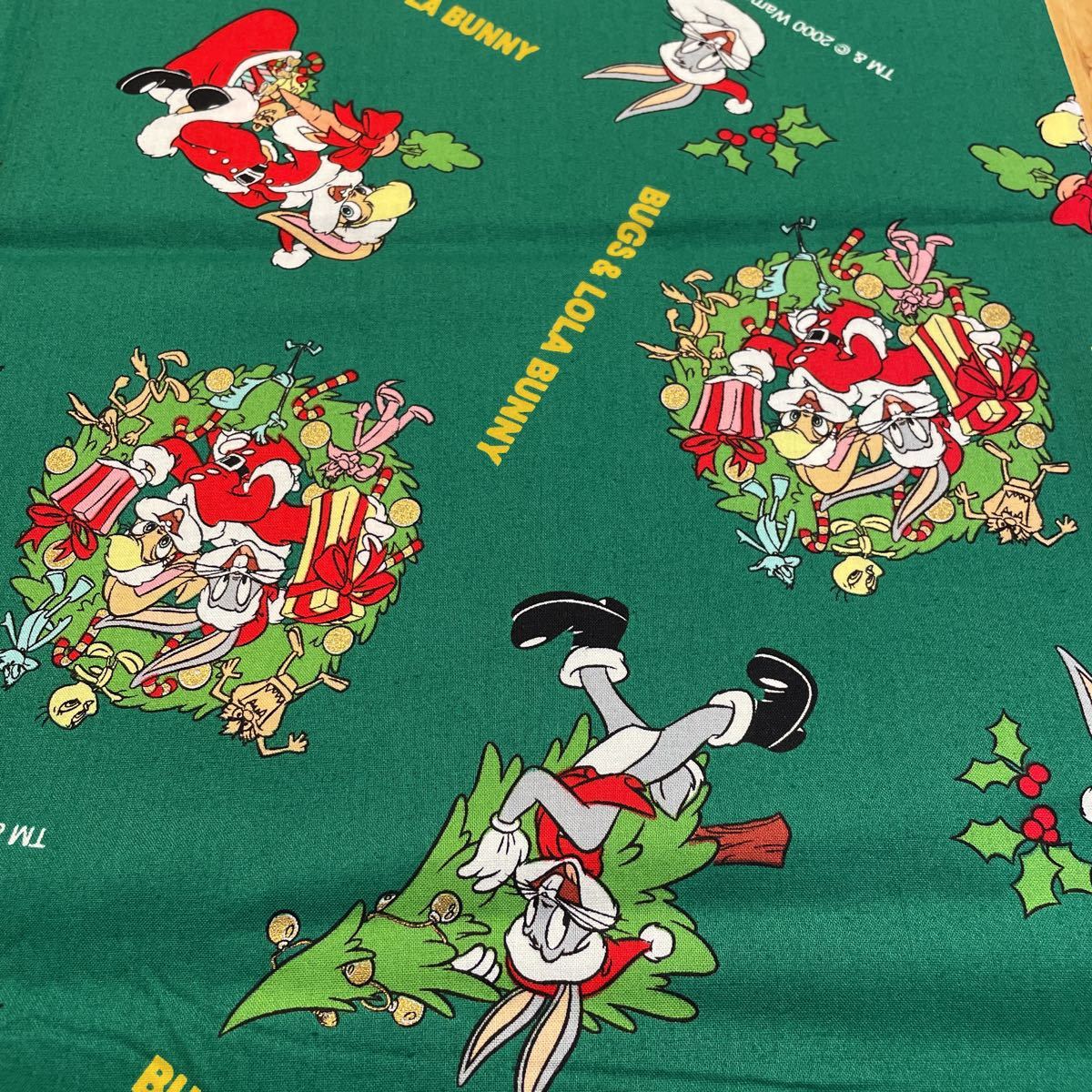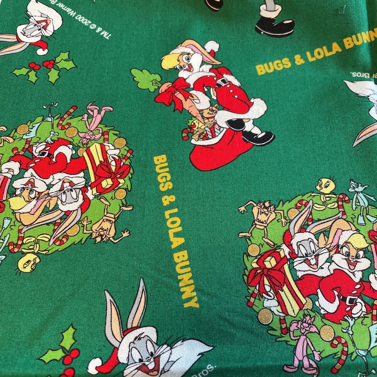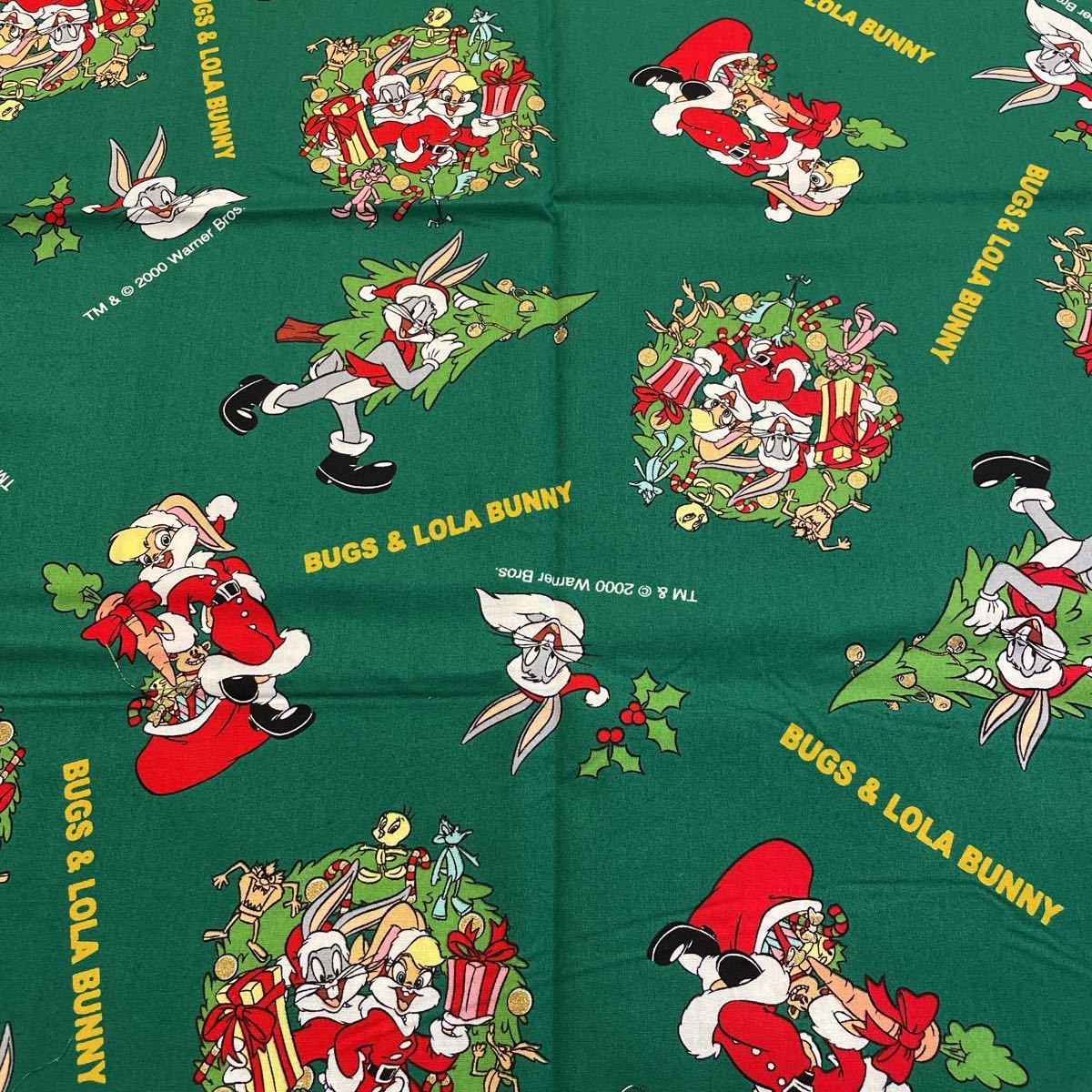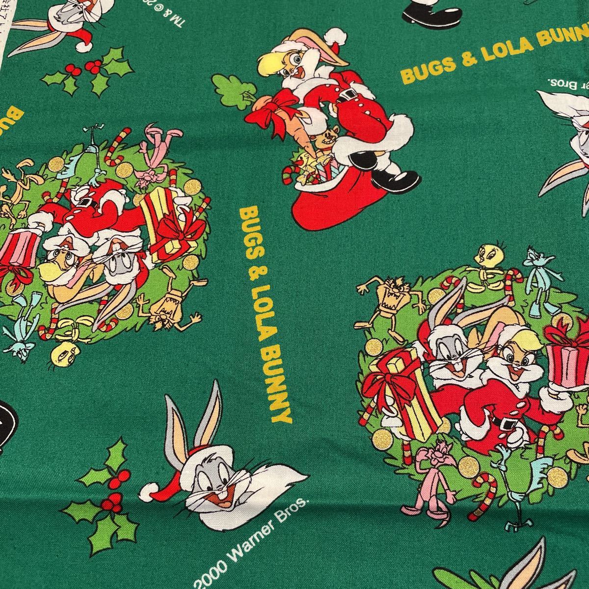 | バックスバニー クリスマス柄 生地はぎれ サイズ 52×52cm しわがあります。カットが真っ直ぐではありません。 | |||