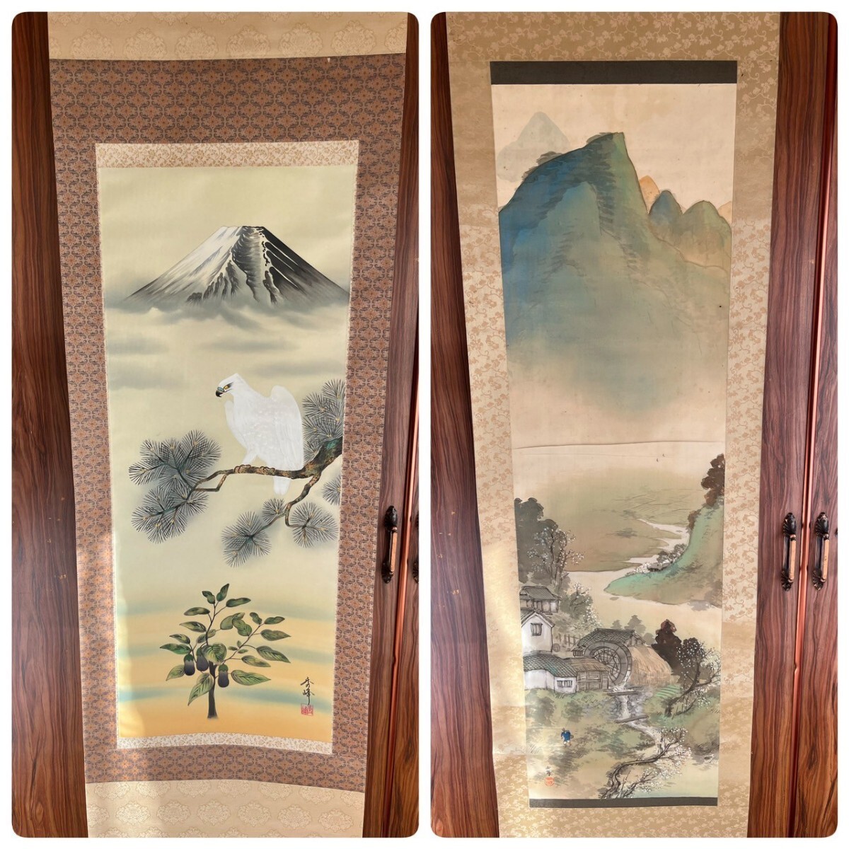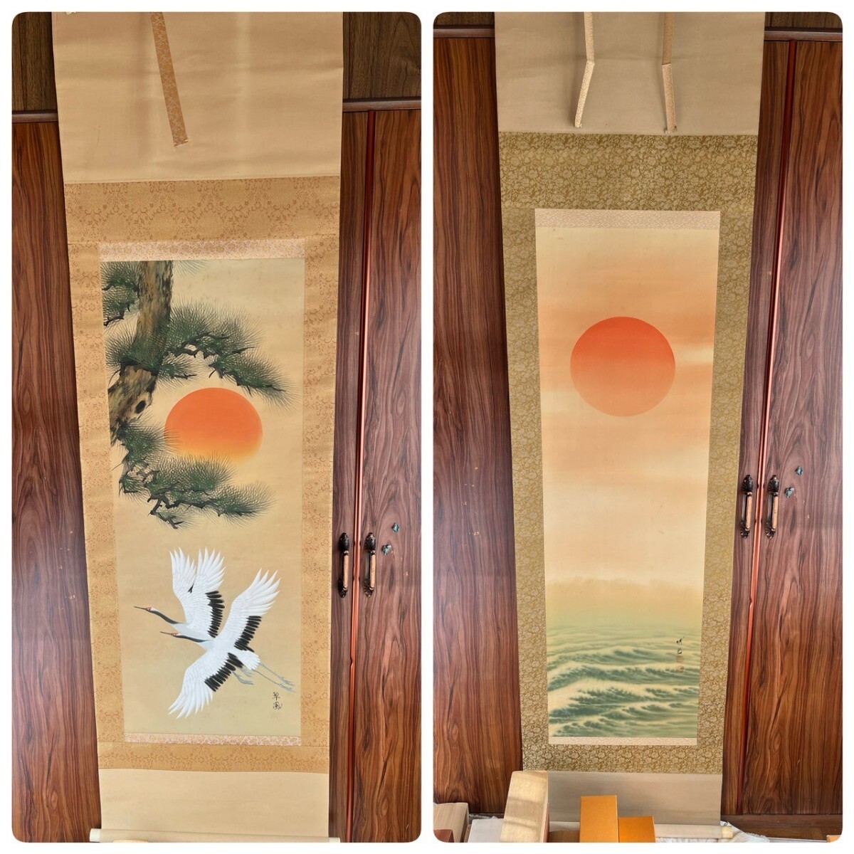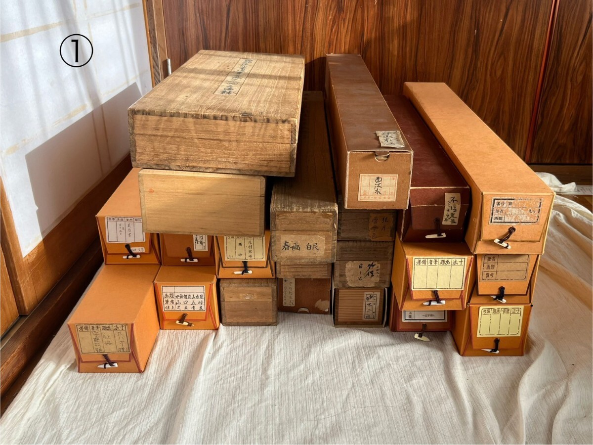 【模写】 ① 掛軸 掛け軸 絵画 日本画 書画 大量 セット まとめて 美術品 骨董 古美術 古道具 共箱 秀峰 日の出 アンティーク