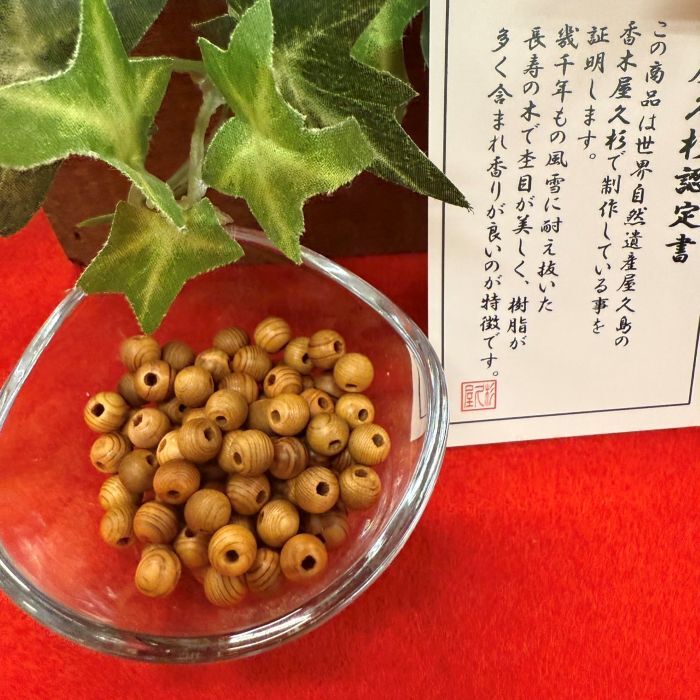 価格は画像の塗装6mmビーズ珠、10玉分になります。 屋久杉で製作した特上磨き、綺麗な仕上がりで、香りが良い珠です。 未使用、新品、屋久杉認定書付です。 ご入金確認後、スマートレターでの発送になります。 到着まで多少日にちが掛かります。