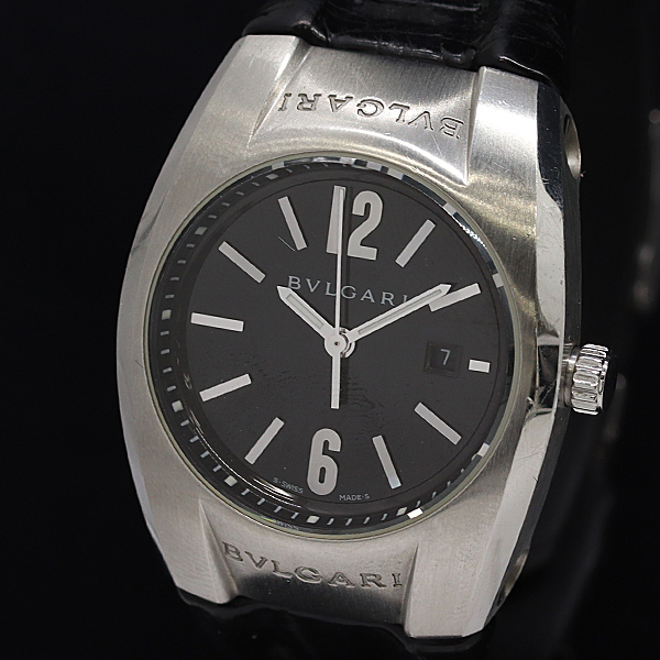 1円 稼働 良品 ブルガリ エルゴン EG30S D4427 QZ ブラック文字盤 メンズ腕時計 2258300 12TLT MTY