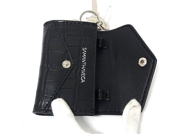 ■新品同様■ Samantha Vega サマンサベガ クロコダイル型押しレザー コインパース 小銭入れ マルチケース ブラック系 DK6157