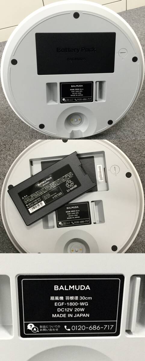 【通電のみ確認】※都内手渡し可 扇風機 BALMUDA バルミューダ EGF-1800-WG Green Fan 羽根径 30cm 日本製 現状品 ジャンク品