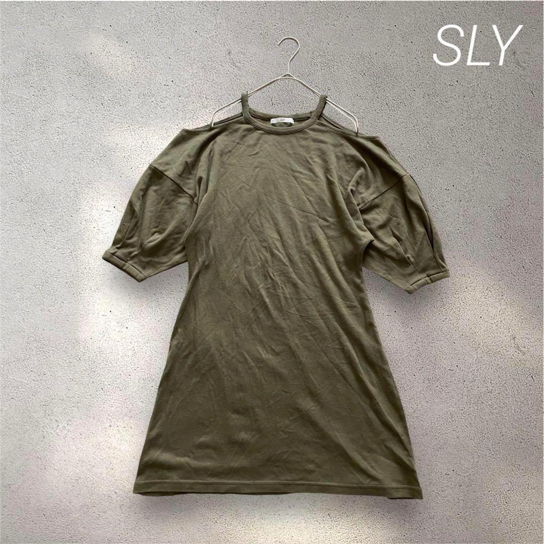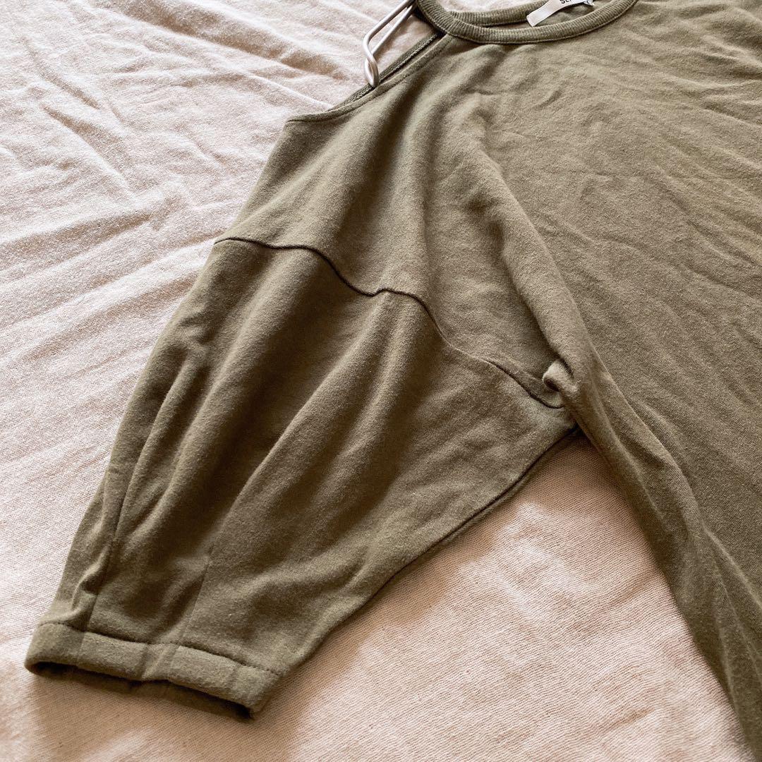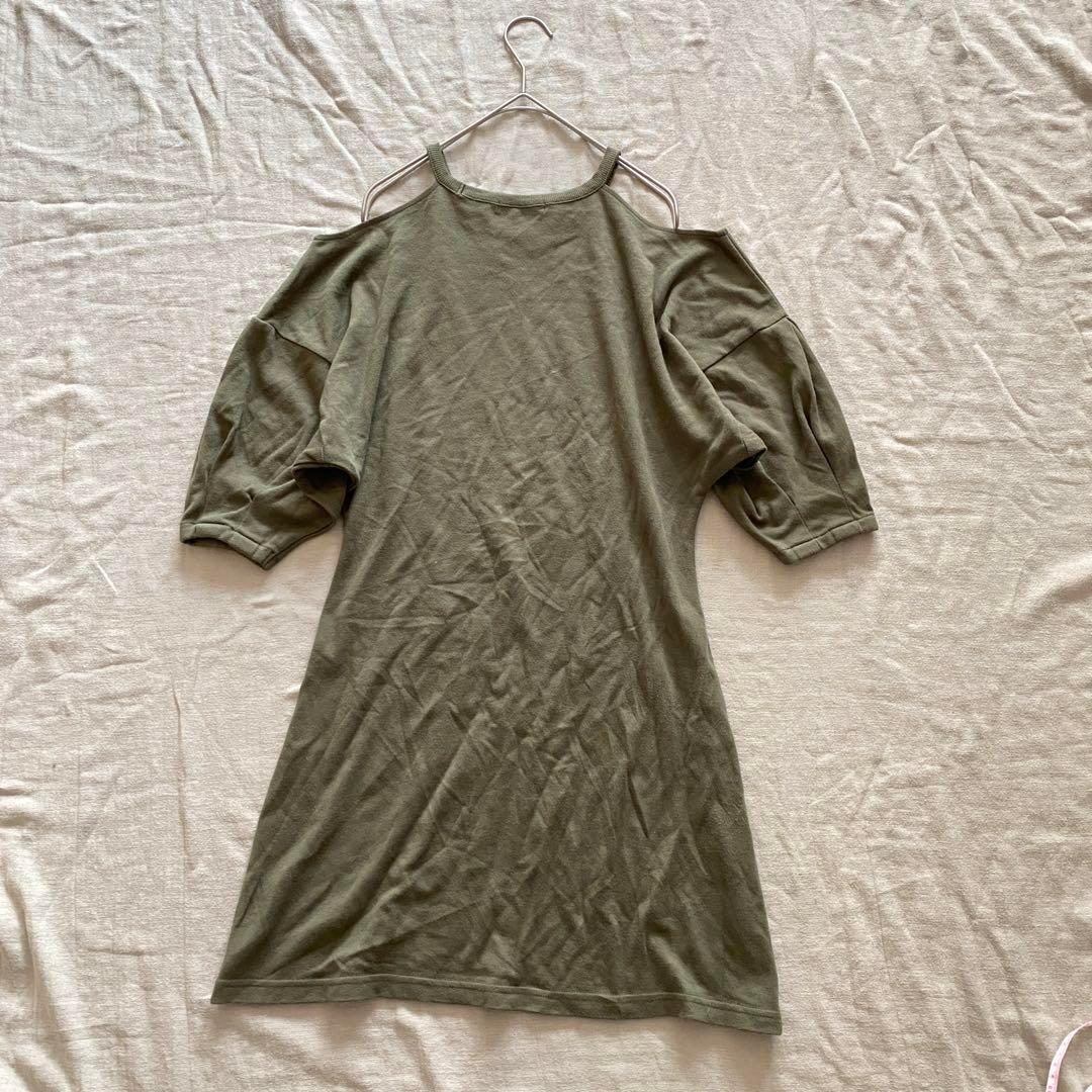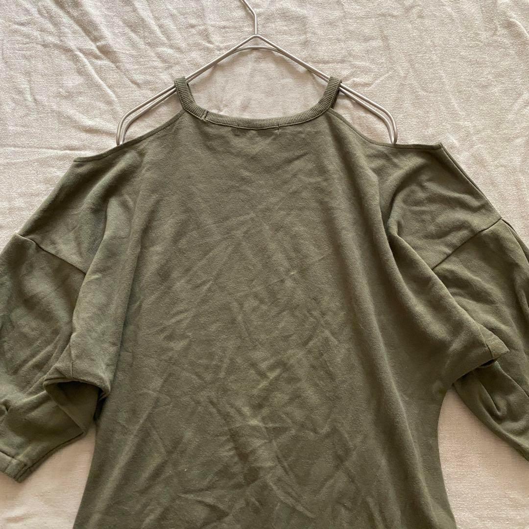 206スライ【F】オリーブ色 オフショルダー チュニック 肩出し カジュアル D6BDD7