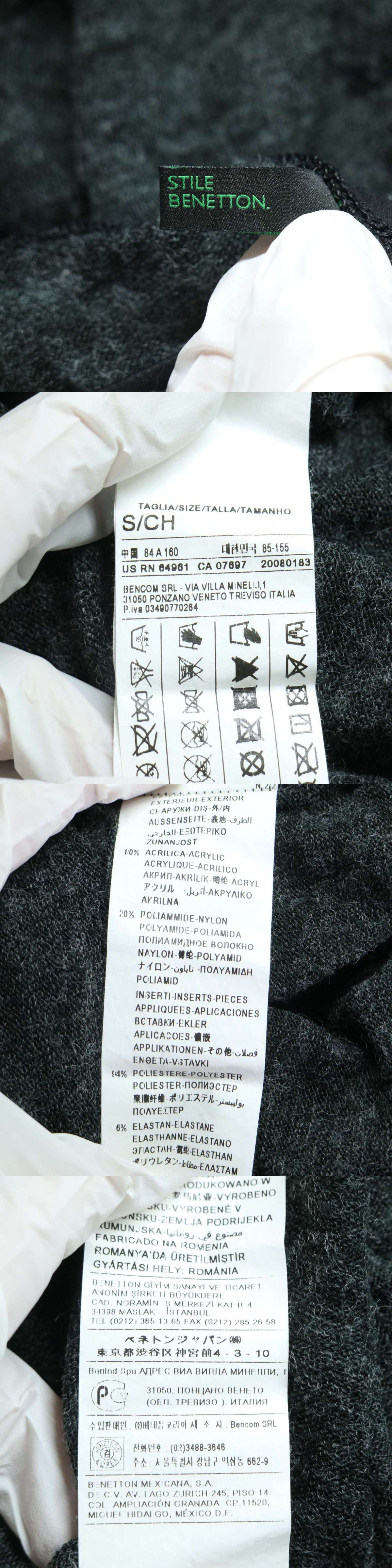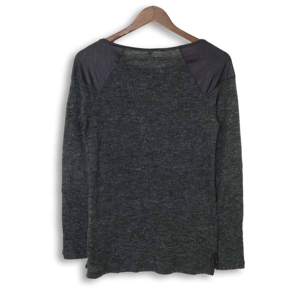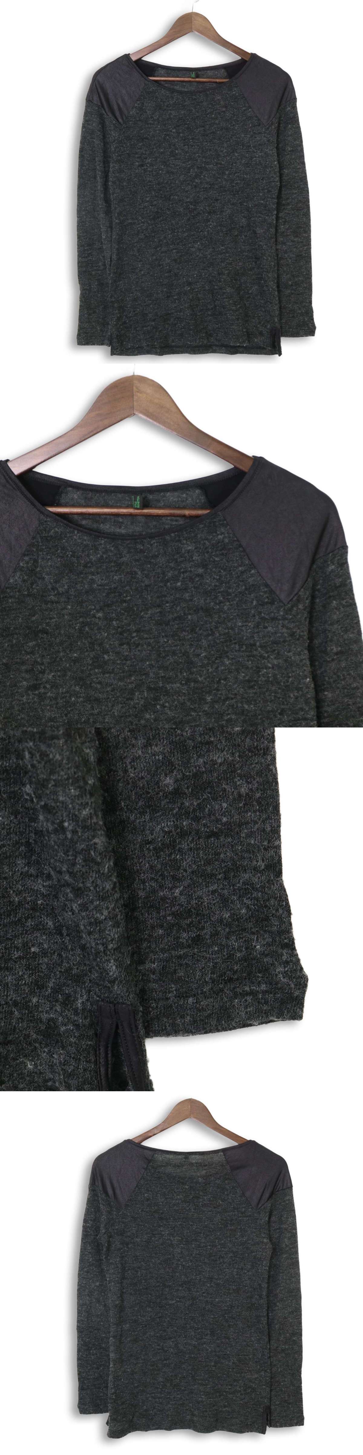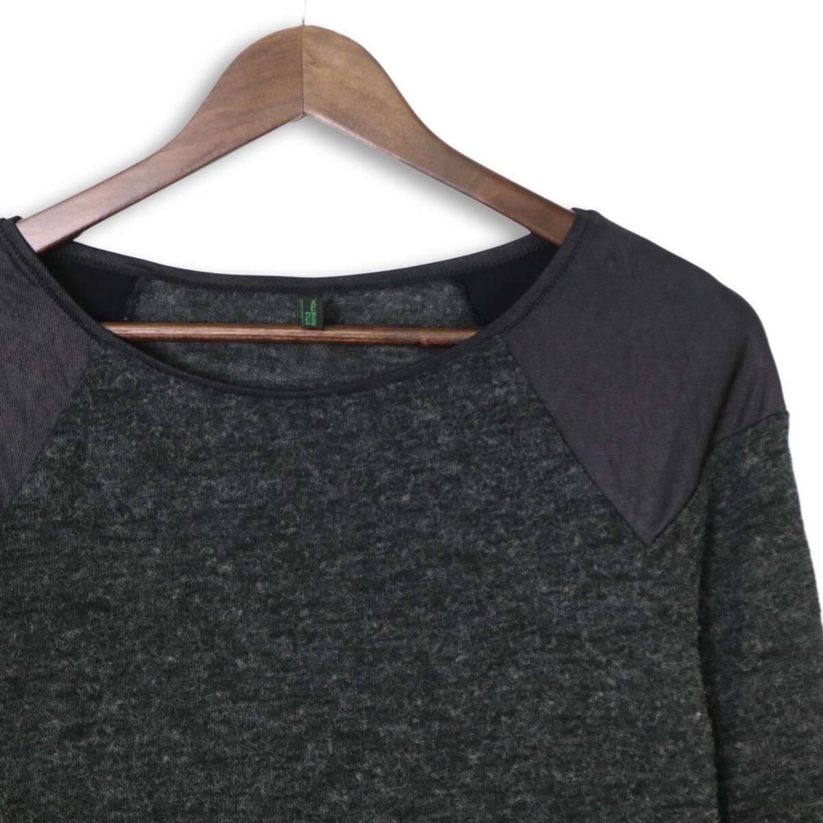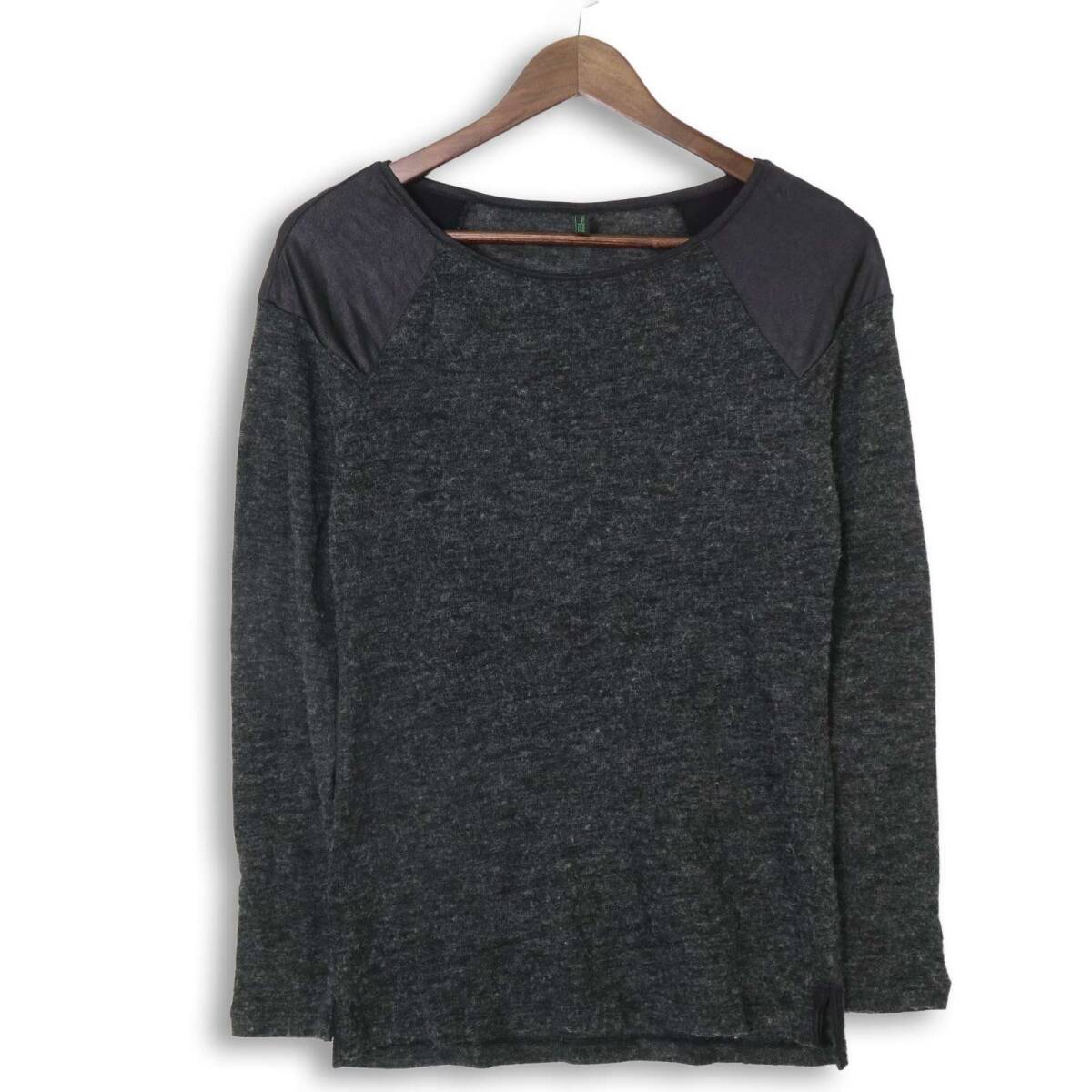 BENETTON ベネトン 秋冬 肩 異素材切替★ ストレッチ 長袖 カットソー ロンTシャツ Sz.S レディース 灰 グレー