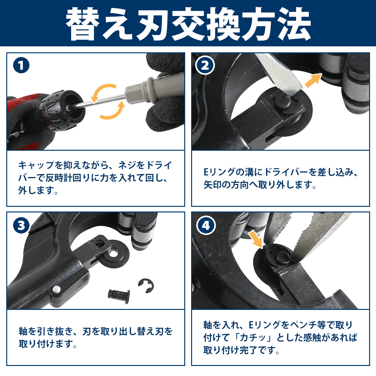 ※回転刃を交換する際は、手袋を装着の上、お取り換えください。