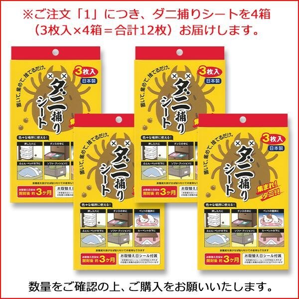 | 日本製 置く・貼るダニ捕りシート 12枚入(3枚入×4個) | |||||||||