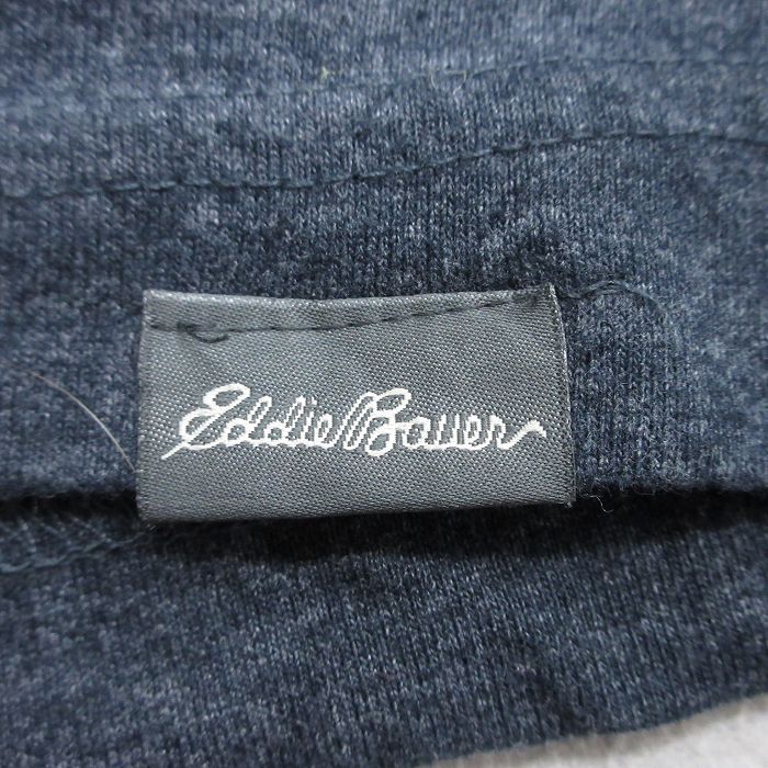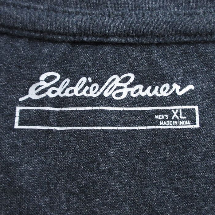 【商品名】 XL★古着 エディーバウアー 長袖 Tシャツ メンズ ワンポイントロゴ 大きいサイズ クルーネック 濃グレー 霜降り