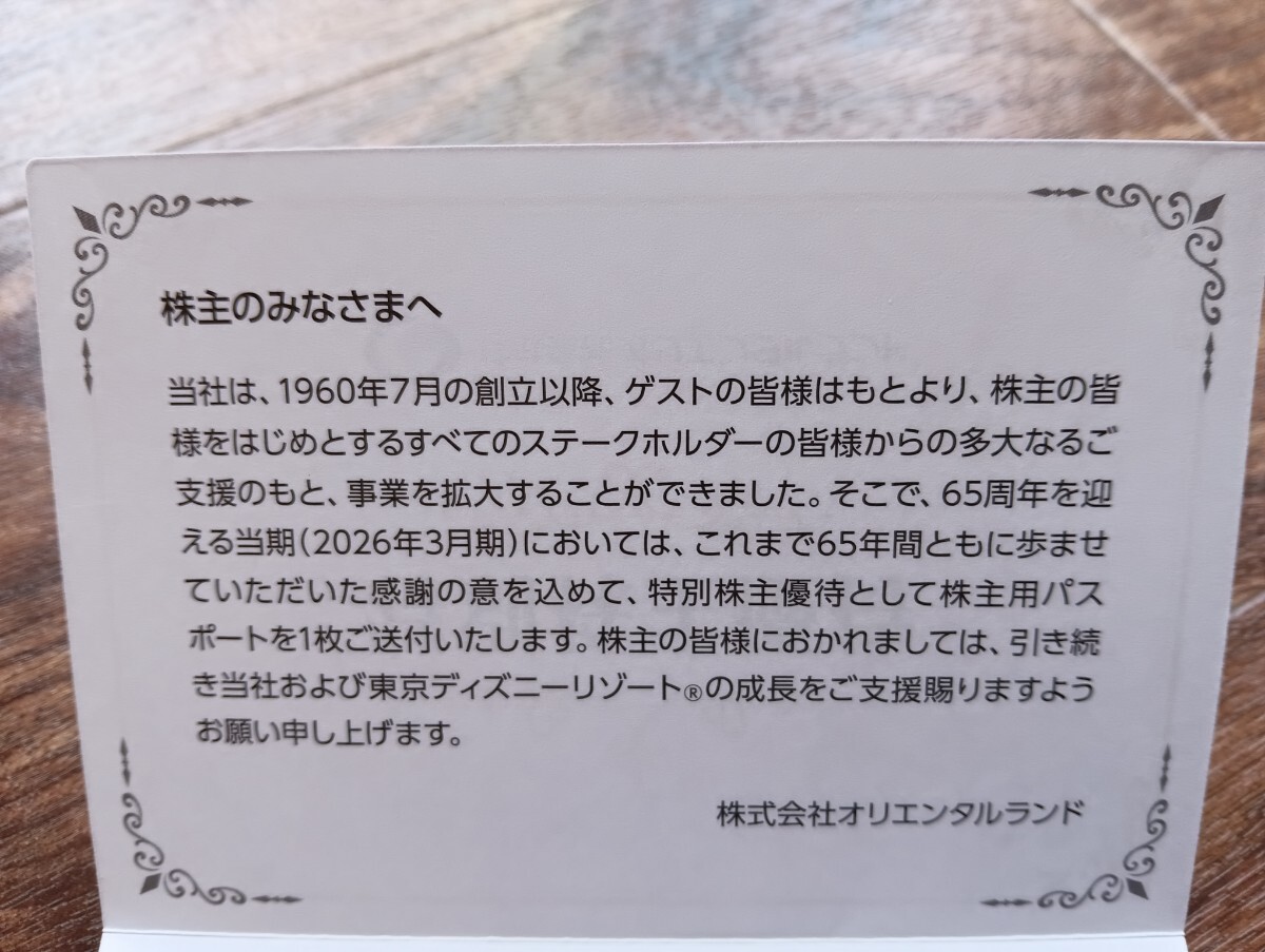 オリエンタルランドの株主優待券 1枚になります。