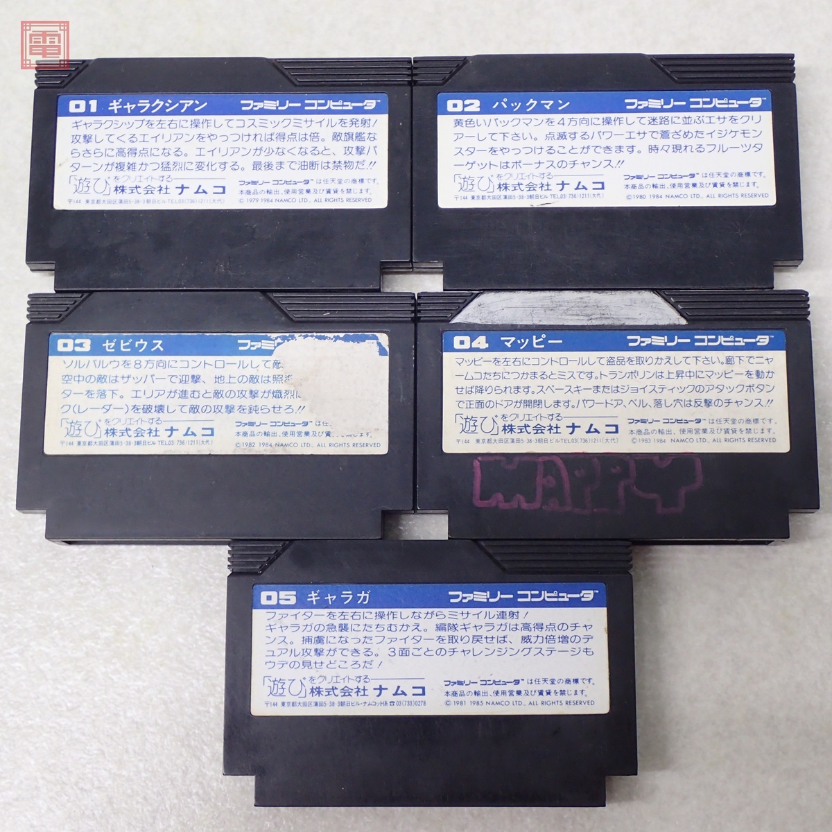 動作保証品 FC ギャラクシアン/パックマン/ゼビウス/マッピー/ギャラガ まとめて 5本セット namcot ナムコット ダブりなし こちらの商品は動作保証品となりますので、一週間の動作保証をお付けします。 ■スレ、キズ、汚れ、イタミ、ヤケ、書込み、破れ、シール貼付などがあります。 ■画像、記載以外のダメージがある可能性があります。予めご了承ください。 ■写真のものが全てです。付属物の有無や状態については写真からご判断ください。 ■付属物については細かいチェックはしておりませんので、万が一、欠品があったり余計な物が入っていたとしてもご了承ください。 ■商品到着後、当店の保証期間中は、商品及び箱や取説、付属品などを1つでも廃棄や破損をしないようにお願い致します。廃棄や破損をした場合、商品に問題があった場合でも対応や返金などの対処ができなくなります。 ■商品によりますが、発売されてから10年以上経過している中古品である事をご理解頂いた上でご入札をお願い致します。なお、新品や美品、また特記事項がある場合は別途明記します。 | |||