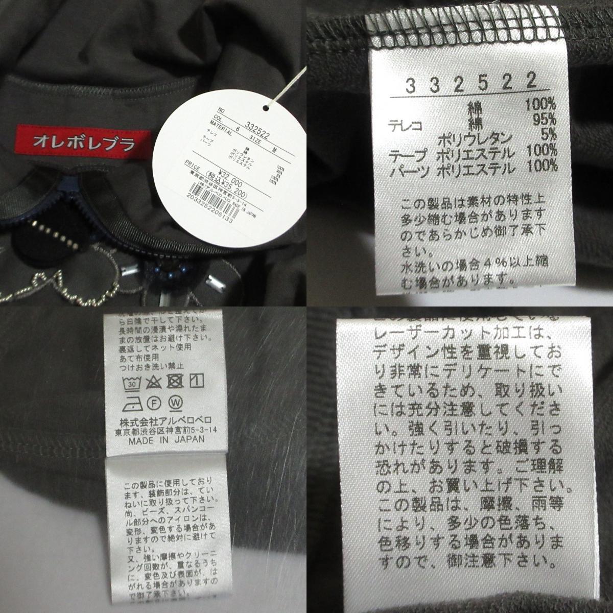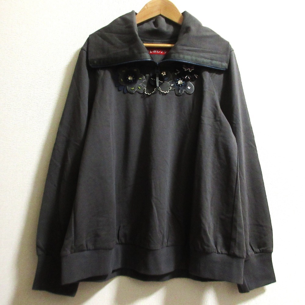 未使用 OLLEBOREBLA ALBEROBELLO オレボレブラ アルベロベロ ぶたさん ビジュー プルオーバー ロングスリーブカットソー サイズM グレー